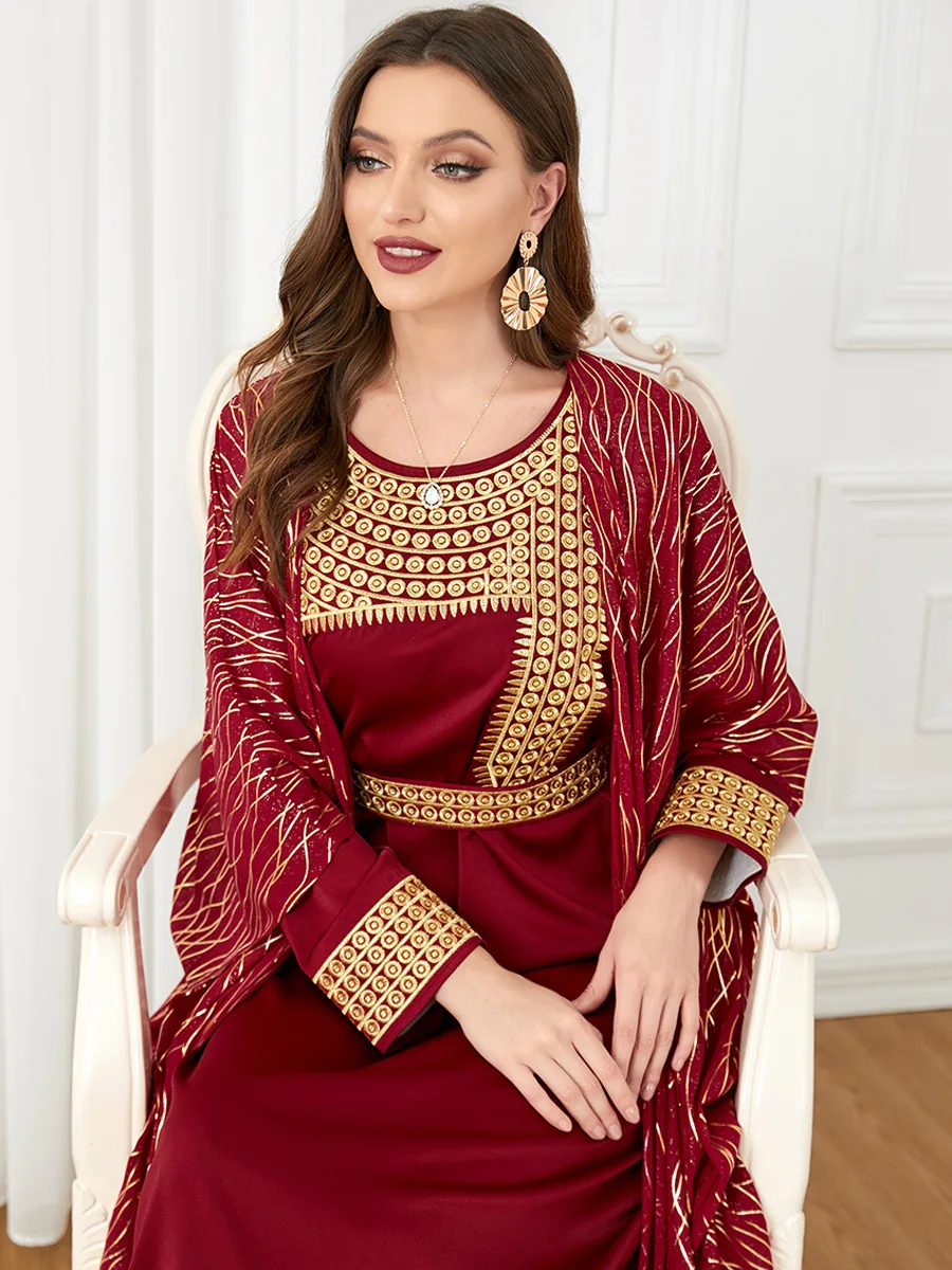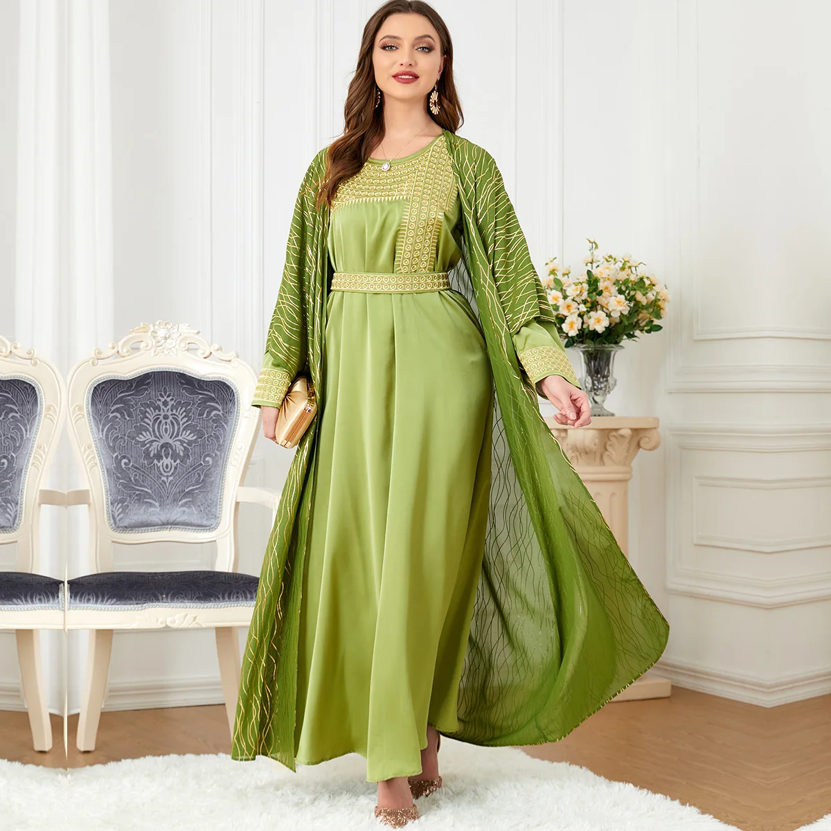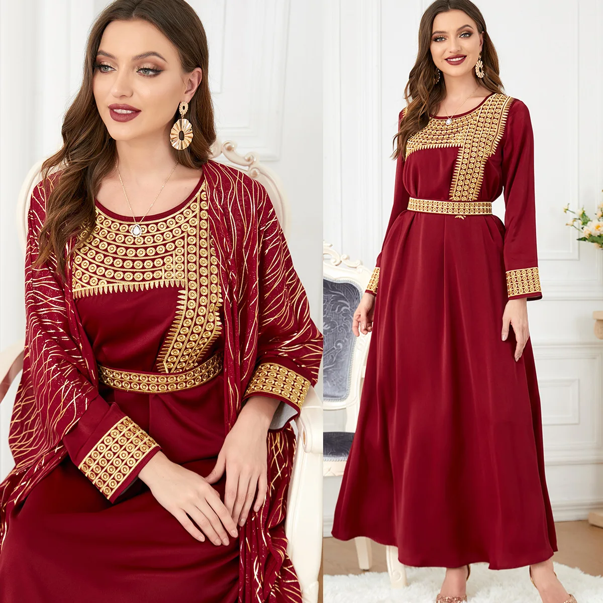 Djellaba Suits Abaya Dubai Two pieces Embroidery Muslim Sets Dress Muslim Islam Abayas With Belt