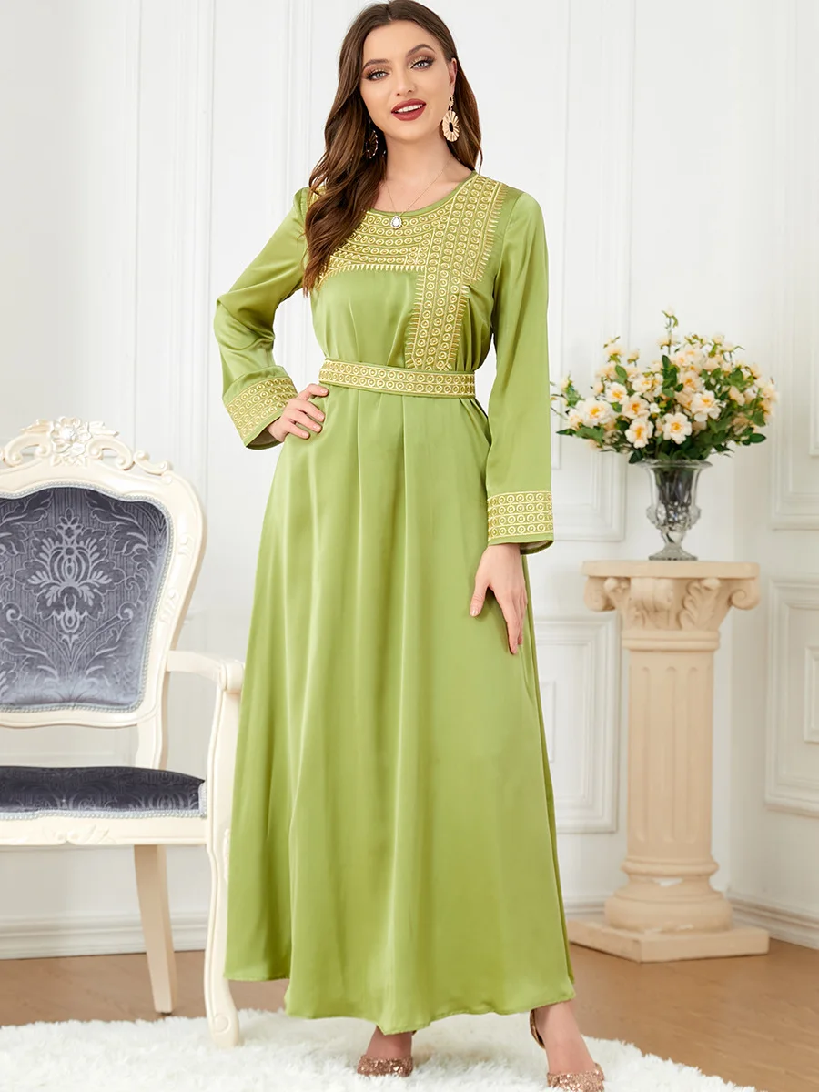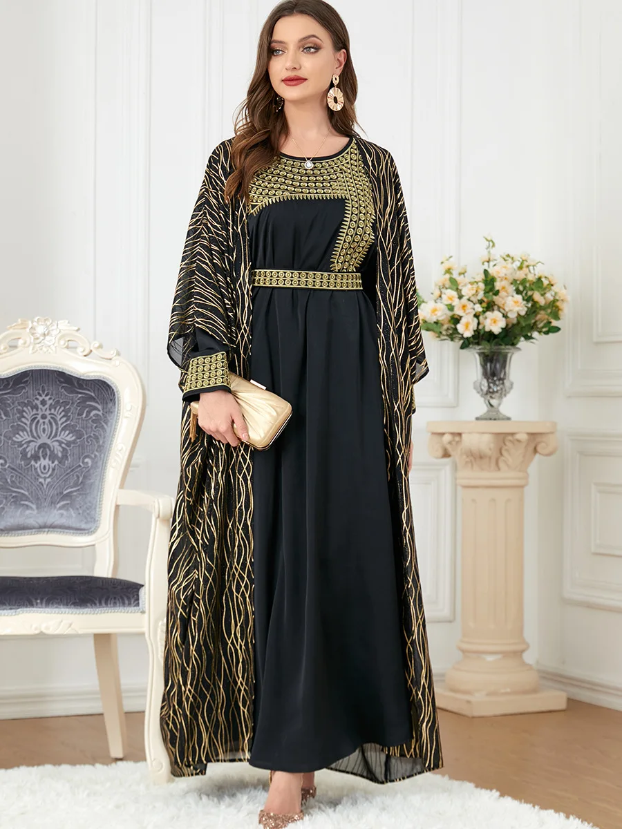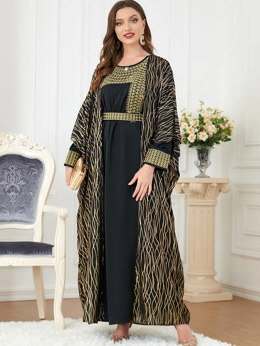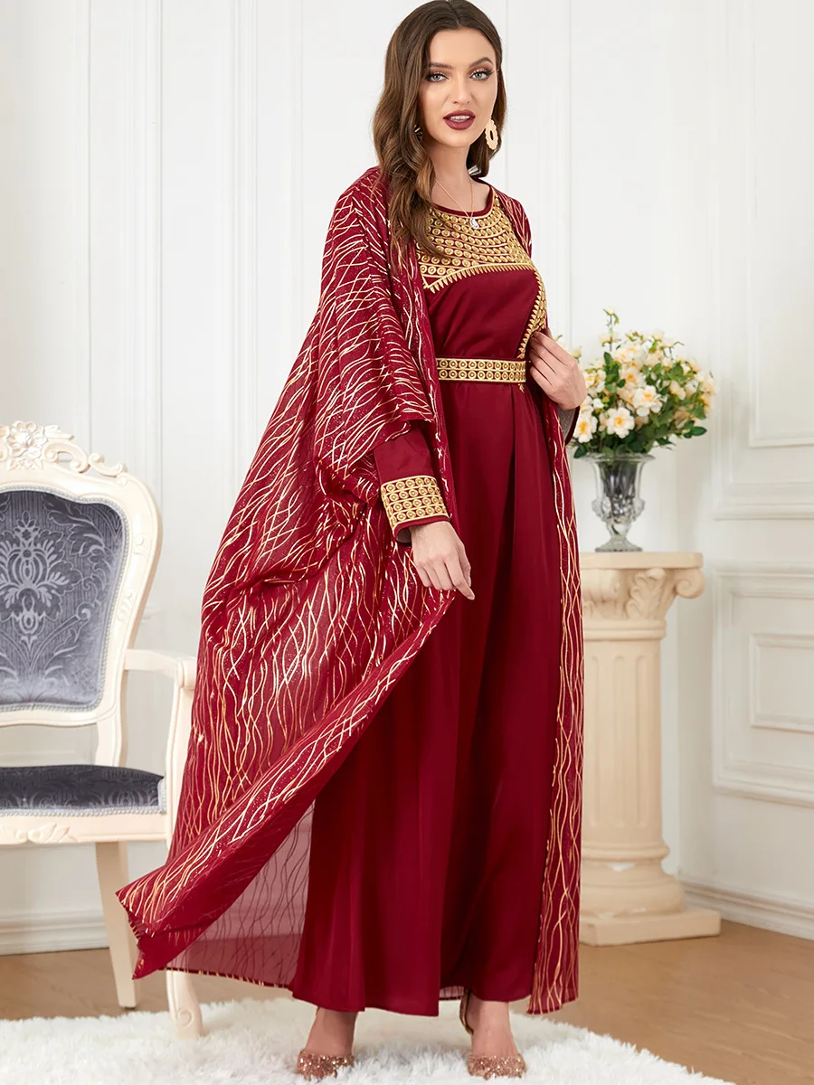 Djellaba Suits Abaya Dubai Two pieces Embroidery Muslim Sets Dress Muslim Islam Abayas With Belt