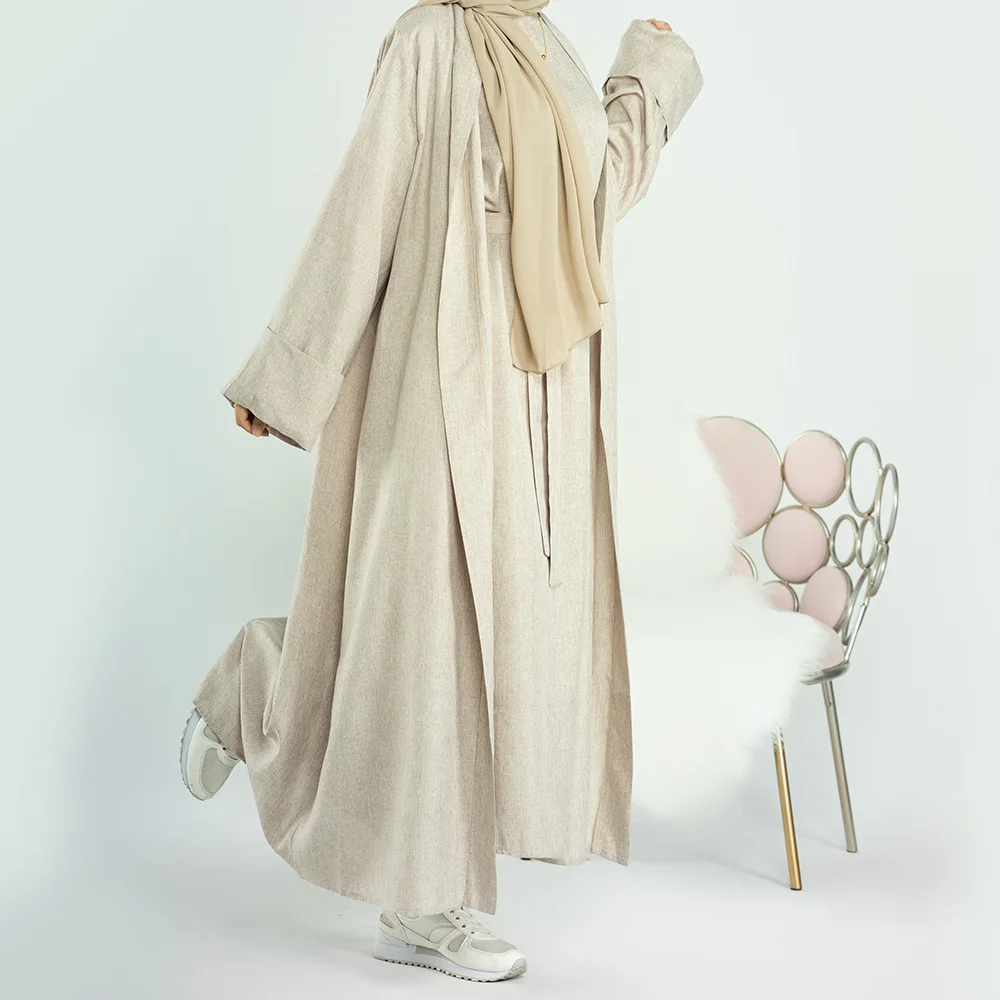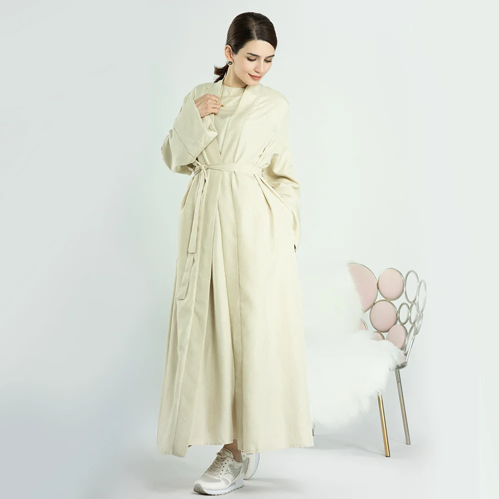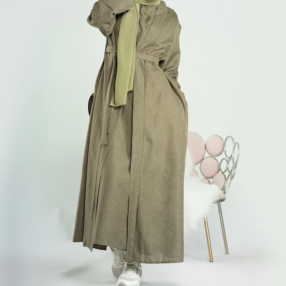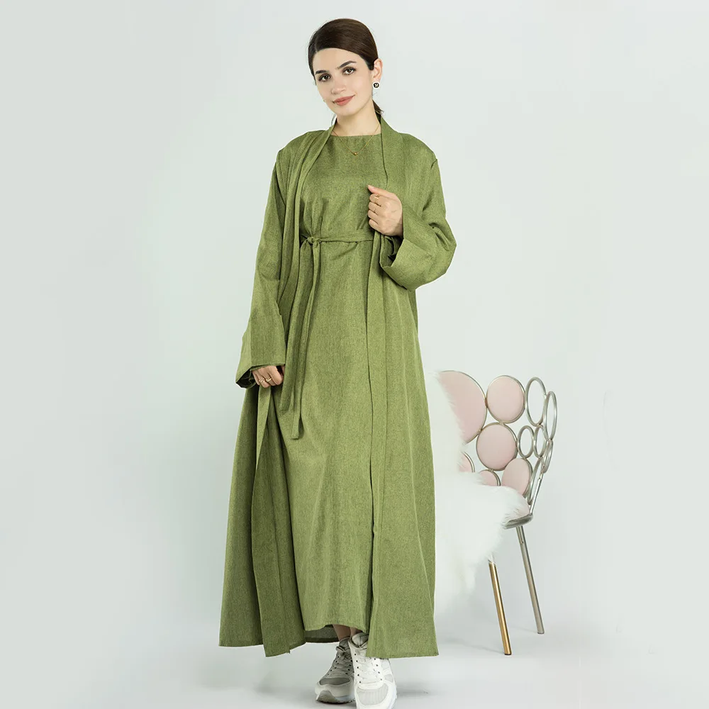 Elegant and Versatile: Two-Piece Djellaba Abaya Set with Belt for Muslim Women in Dubai