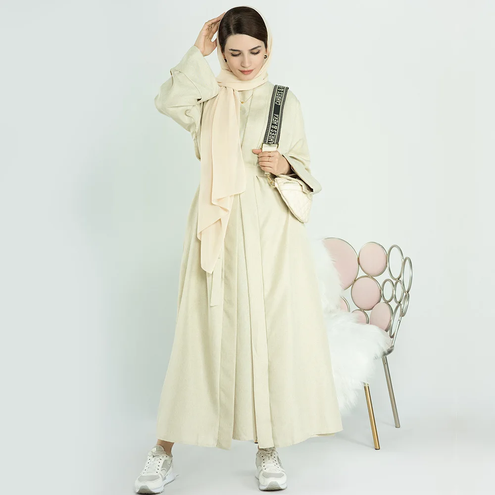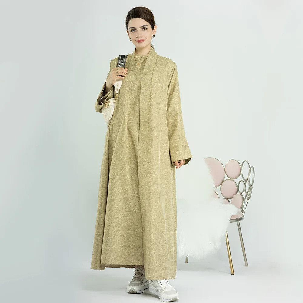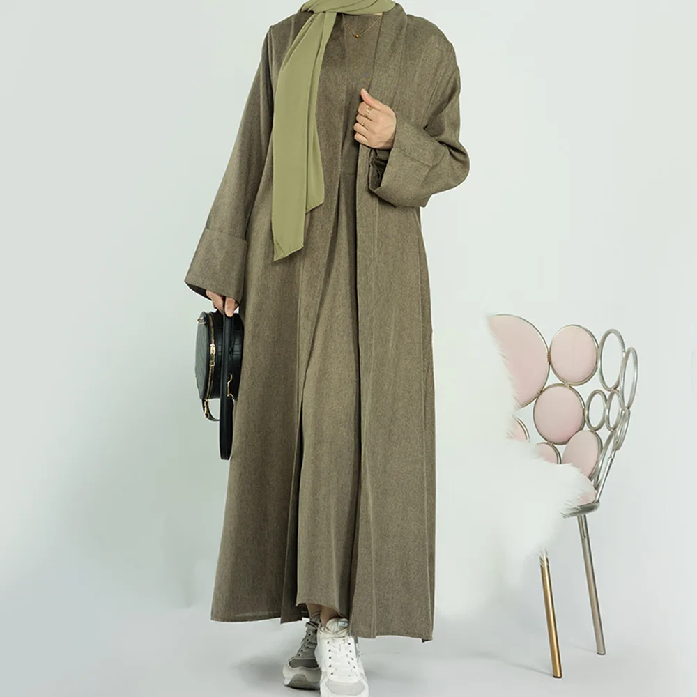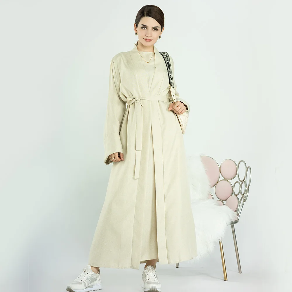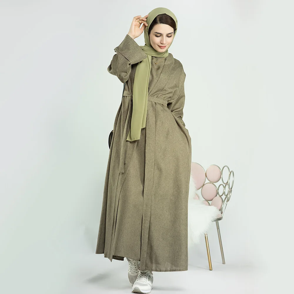 Elegant and Versatile: Two-Piece Djellaba Abaya Set with Belt for Muslim Women in Dubai