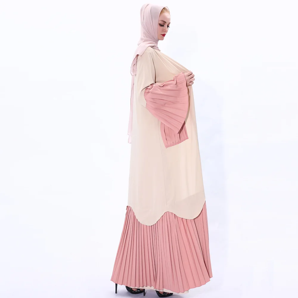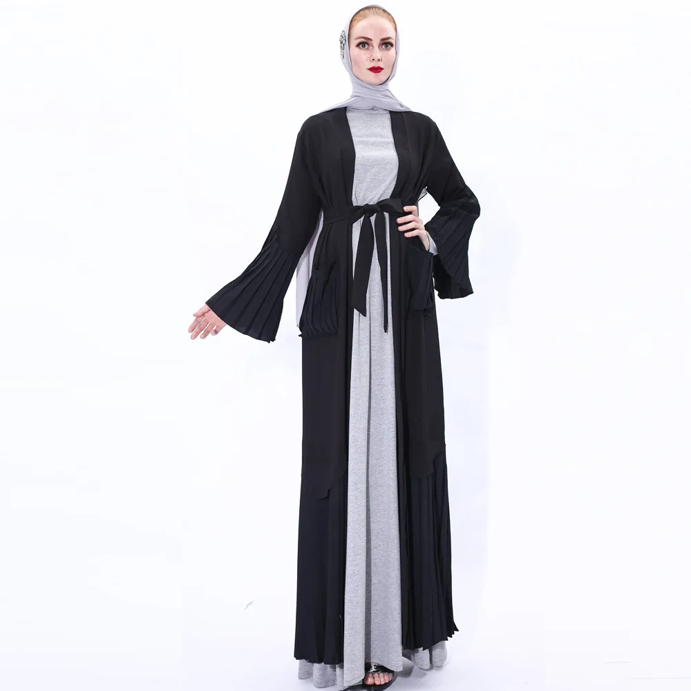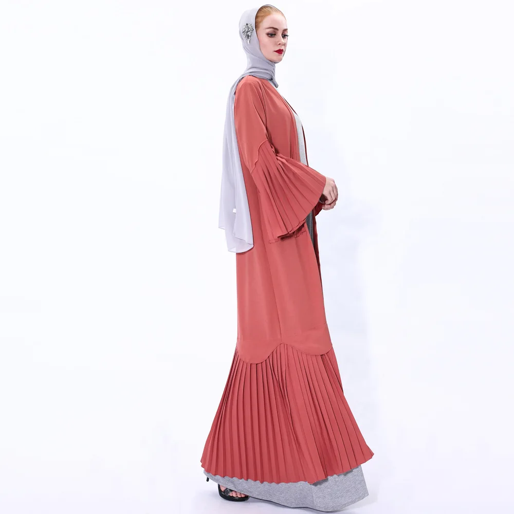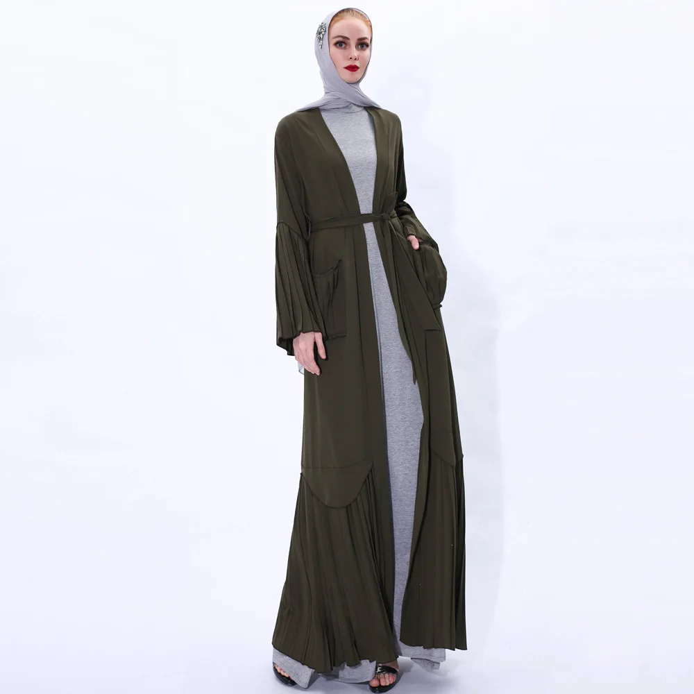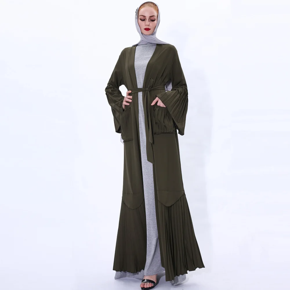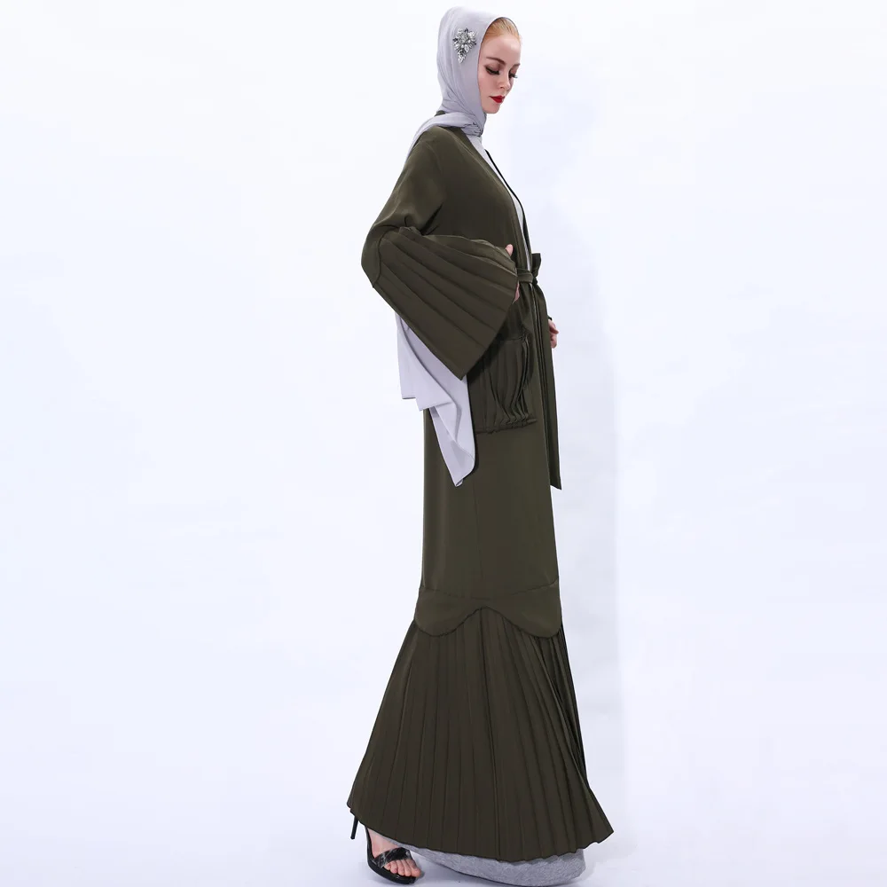 Ramadan Eid pleated Kimono Cardigan Abaya female Dubai Hijab Muslim Dress Kaftan Caftan Islam Clothing Abayas Robe