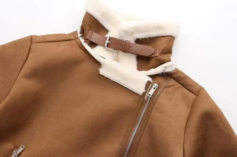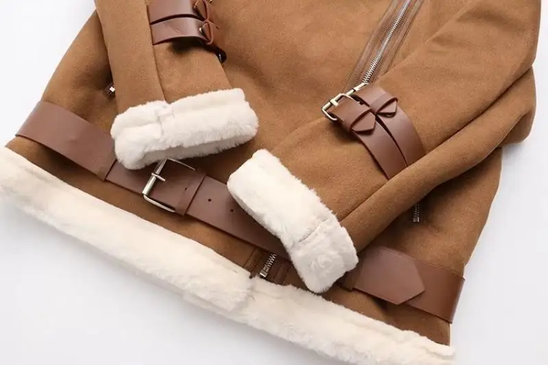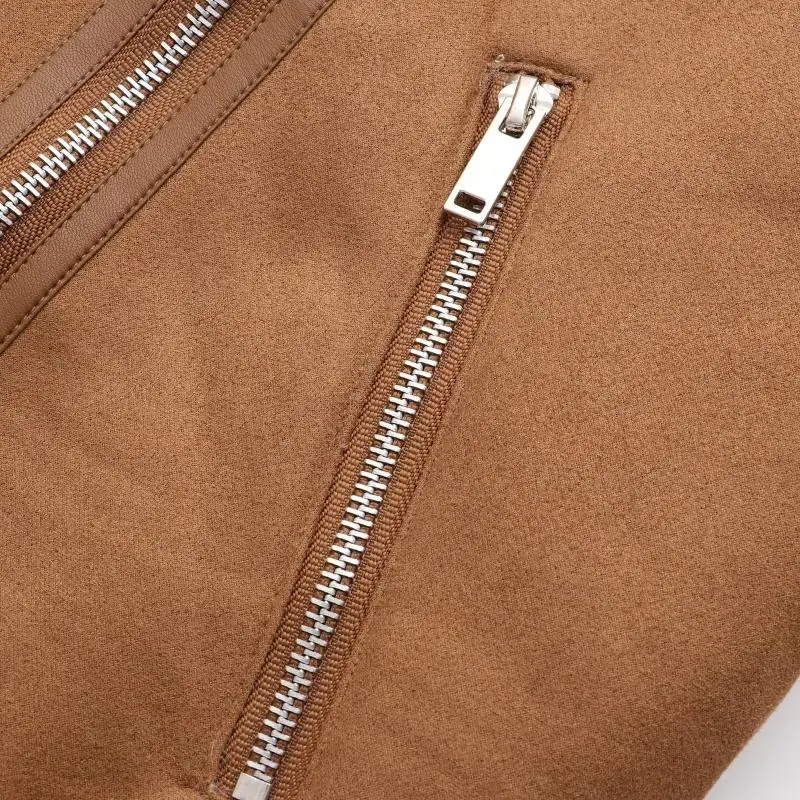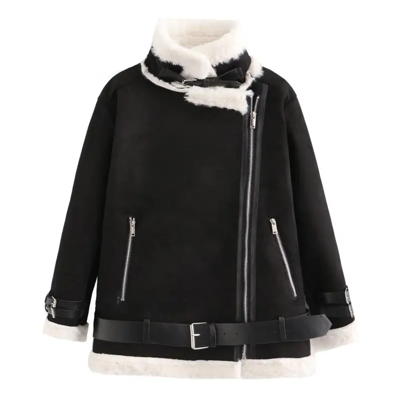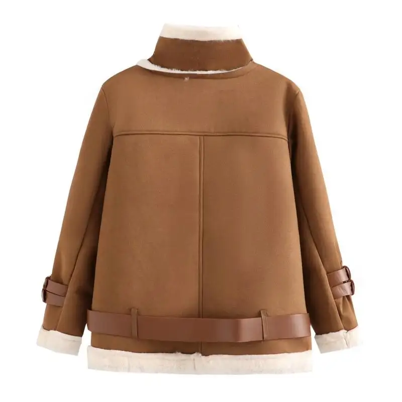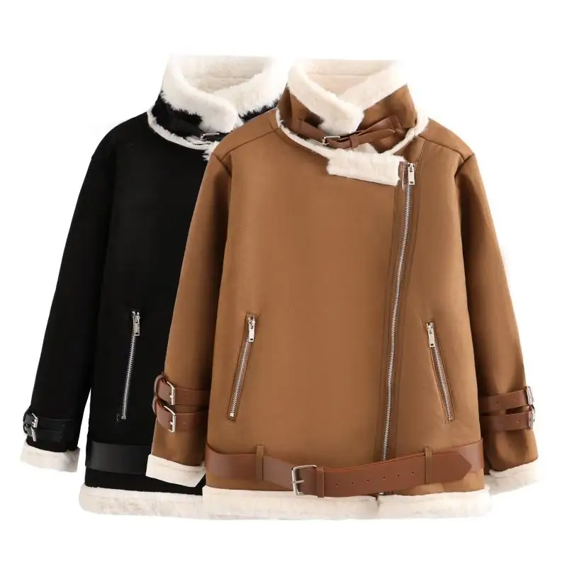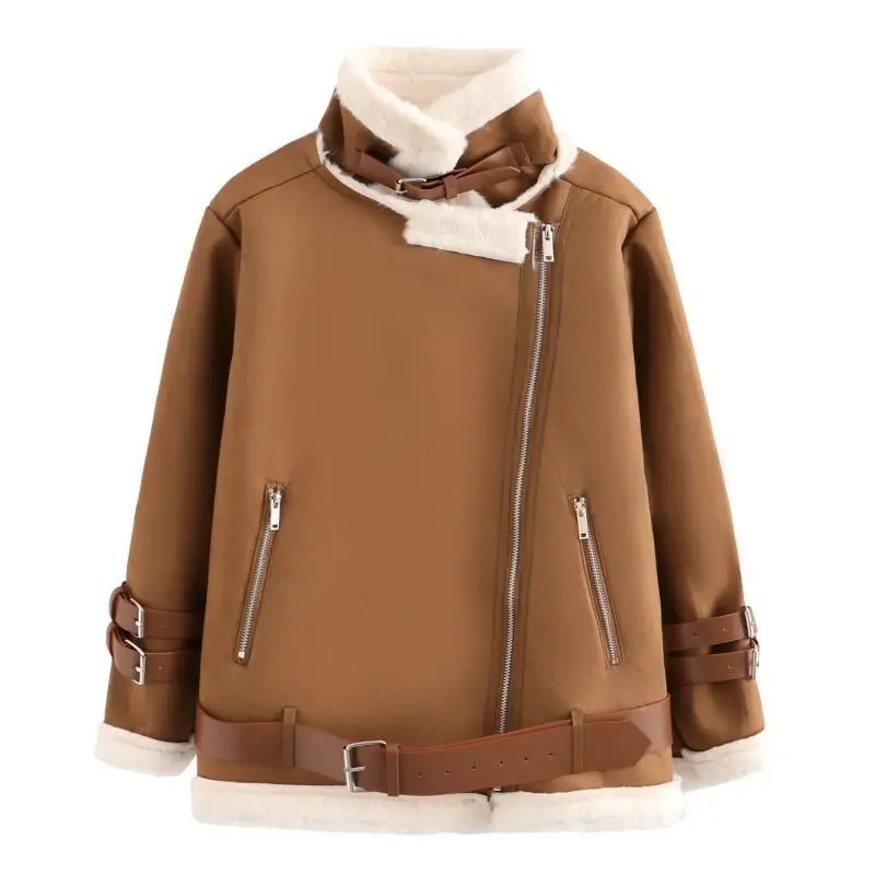 Key selling points: Made with high-quality leather, long sleeves for extra coverage, fleece padding for added warmth, and a trendy moto biker design.