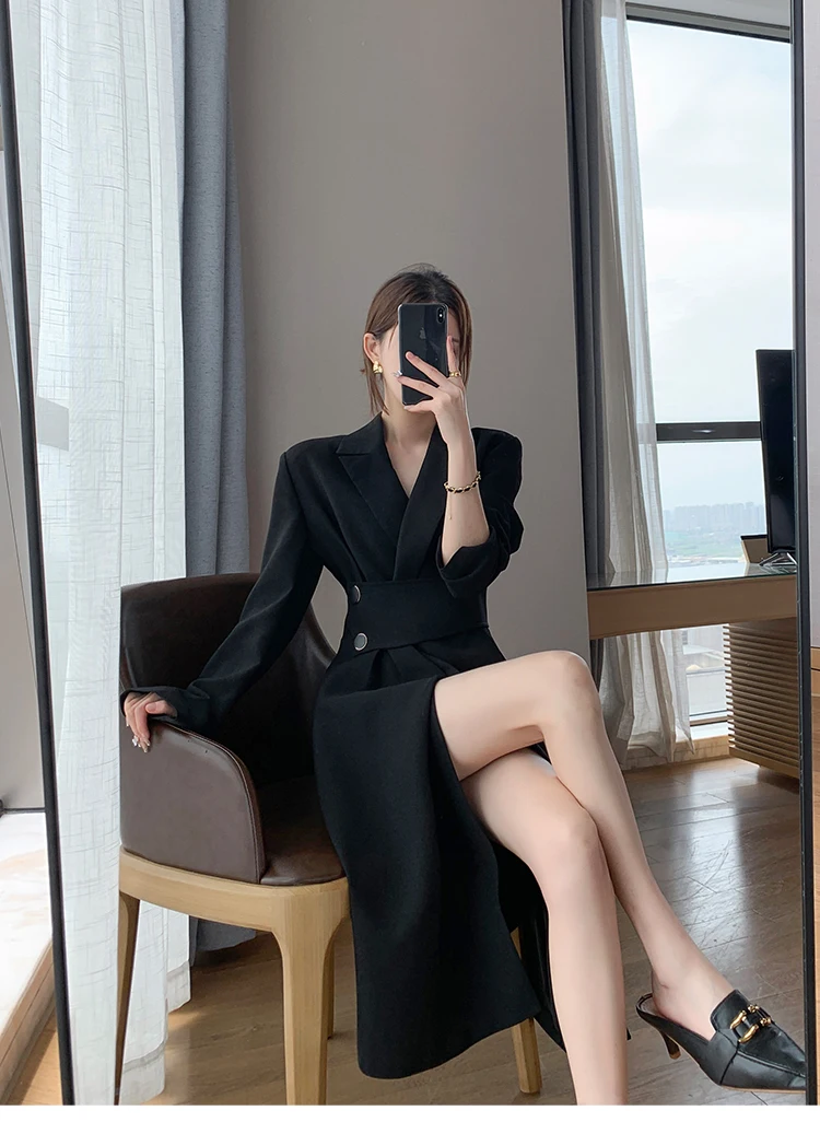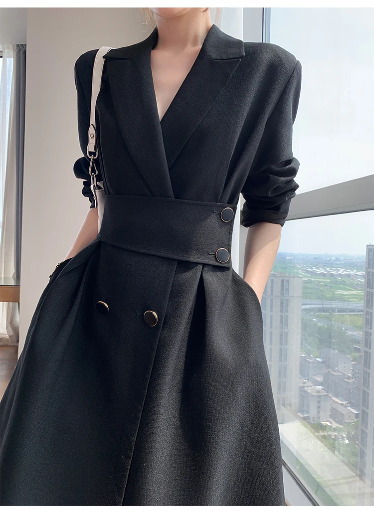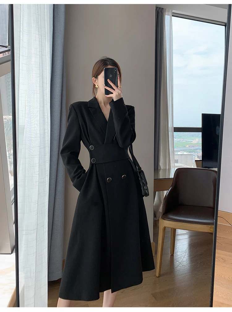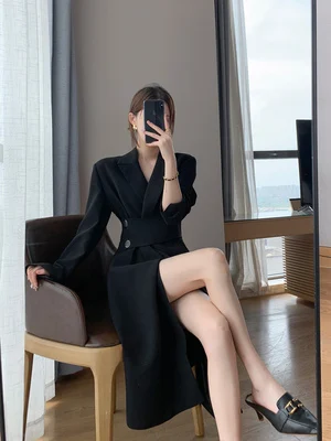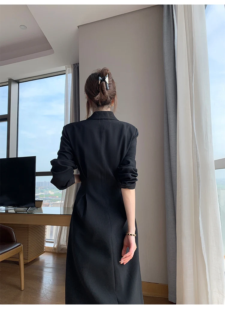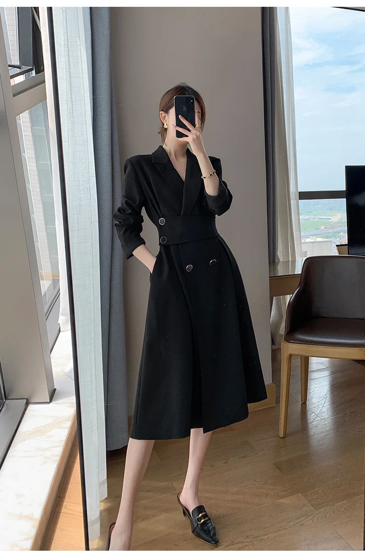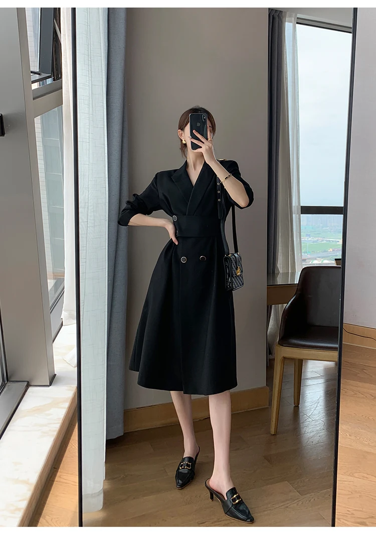 Women's Spring Autumn Casual Fashion Korean Midi Black Dress Long Sleeve Elegant A-Line Party Vestidos Female Outwear Clothes