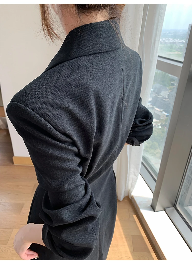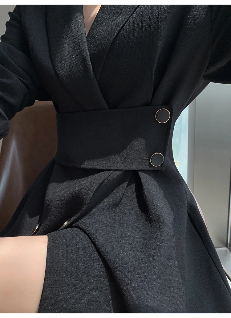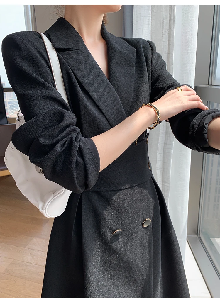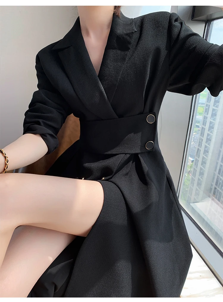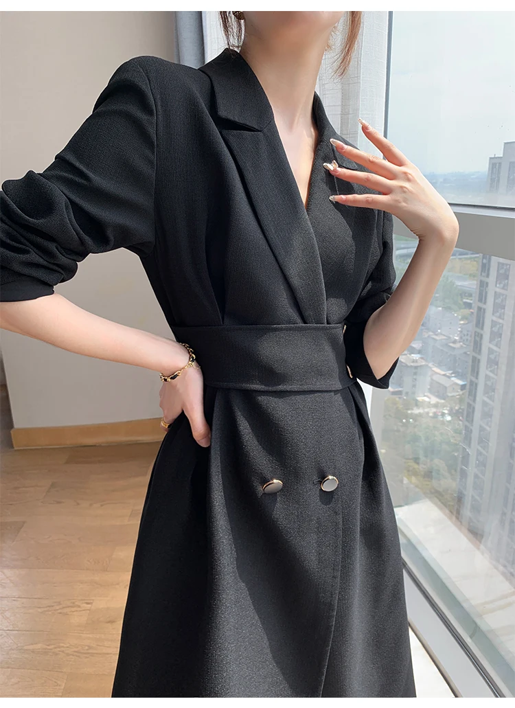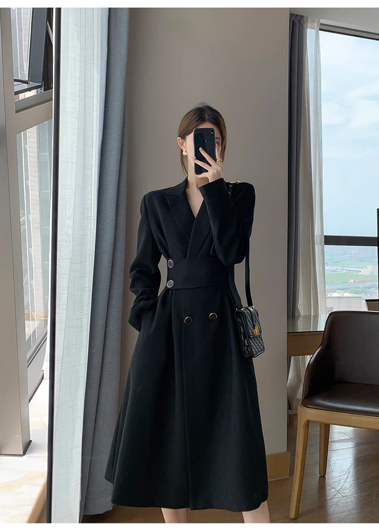 Women's Spring Autumn Casual Fashion Korean Midi Black Dress Long Sleeve Elegant A-Line Party Vestidos Female Outwear Clothes