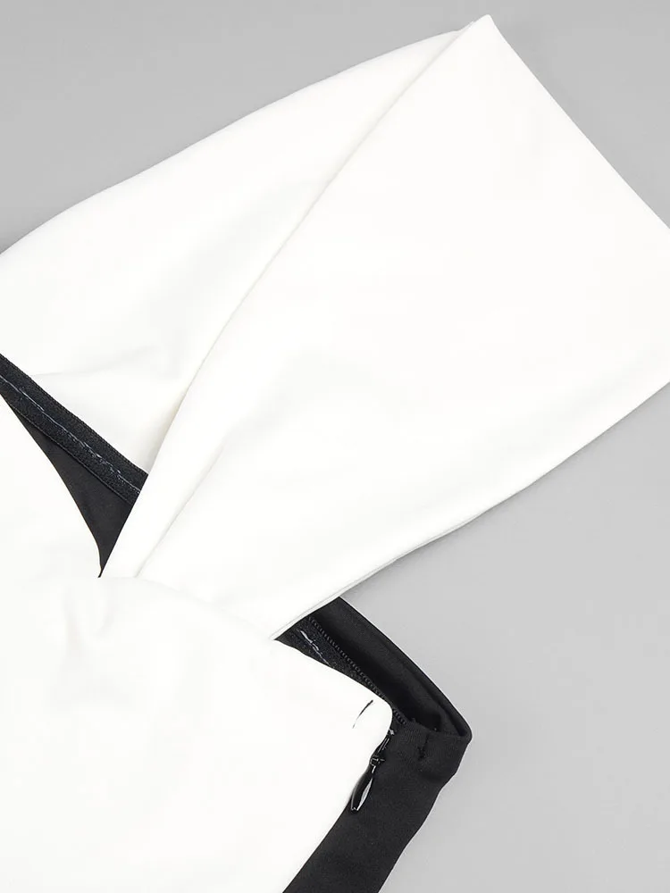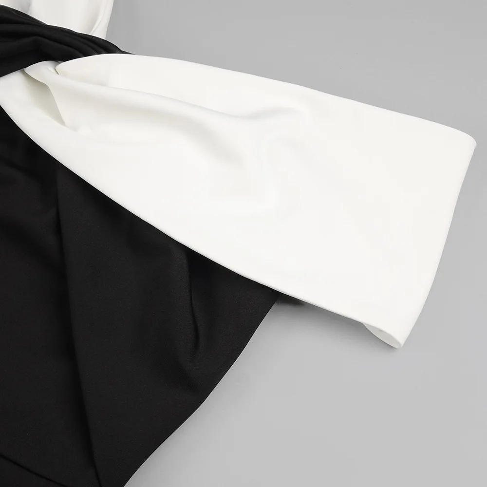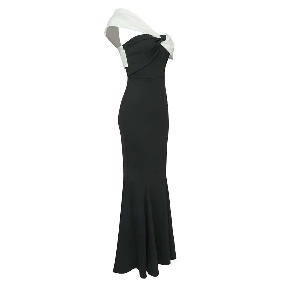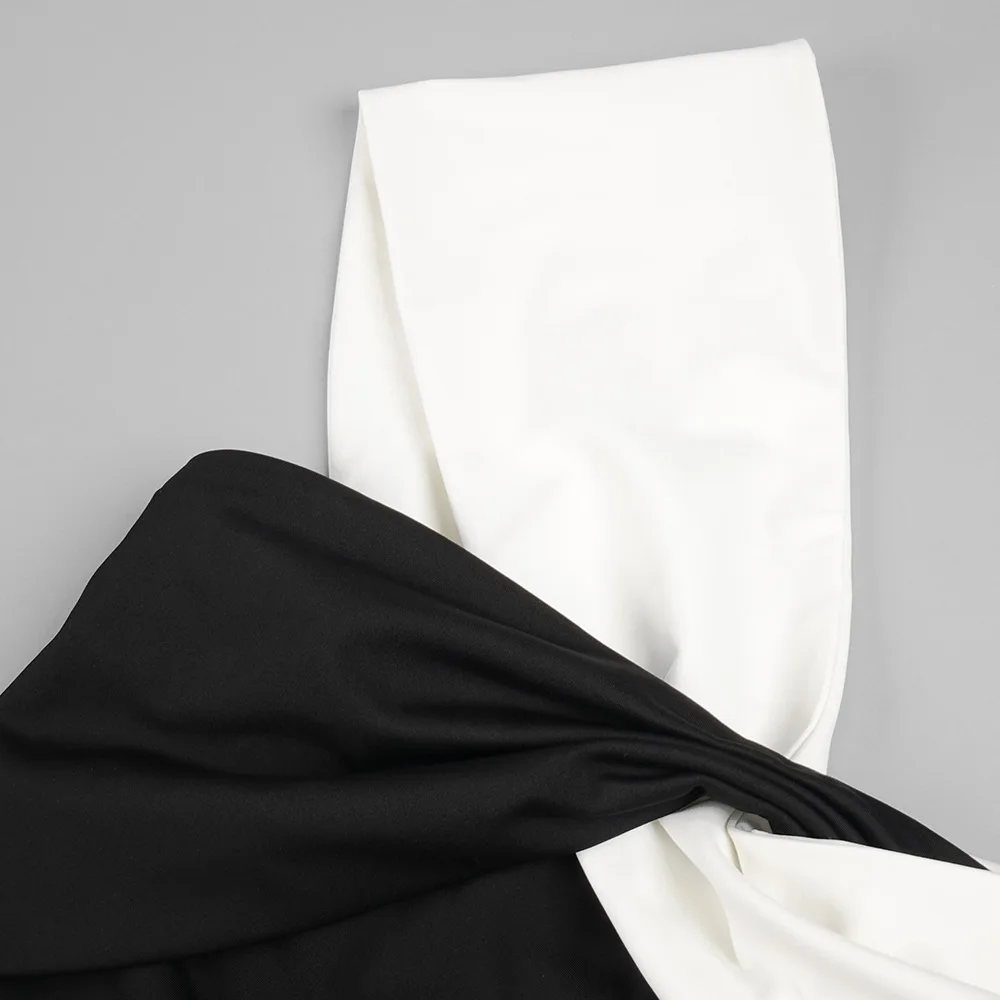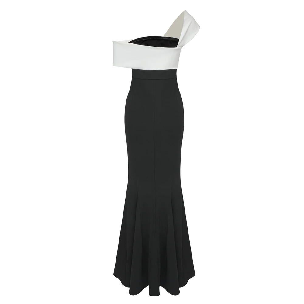 Colorblock One Shoulder Strapless Long Skirt For Women Sleeveless High Waist Belt Design Elegant Dress