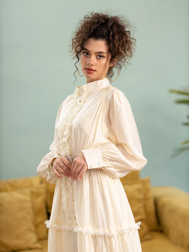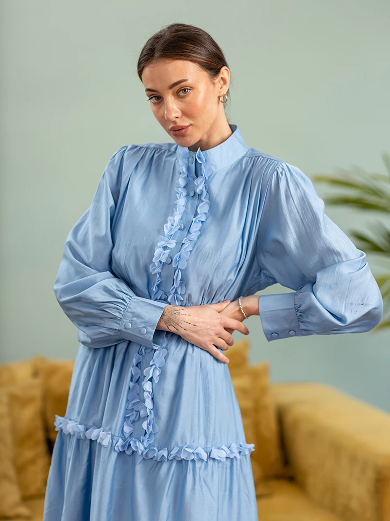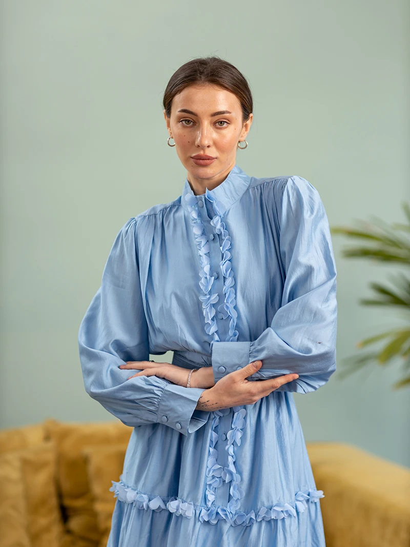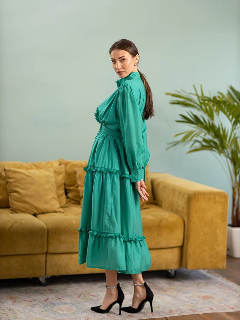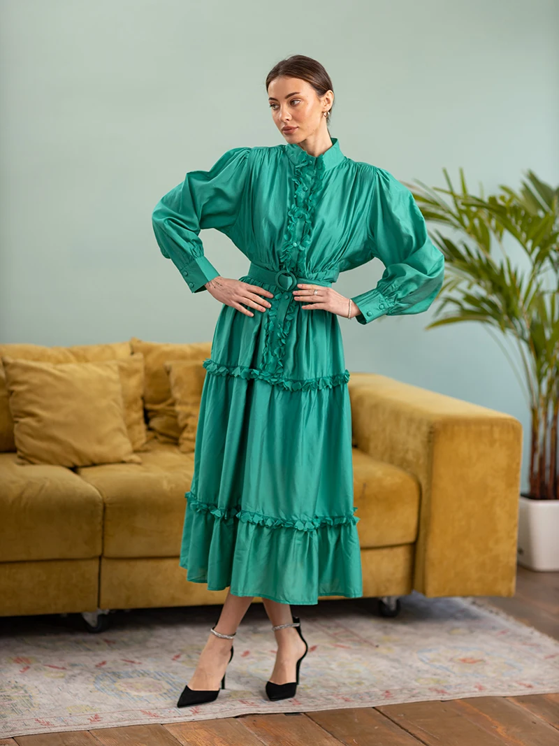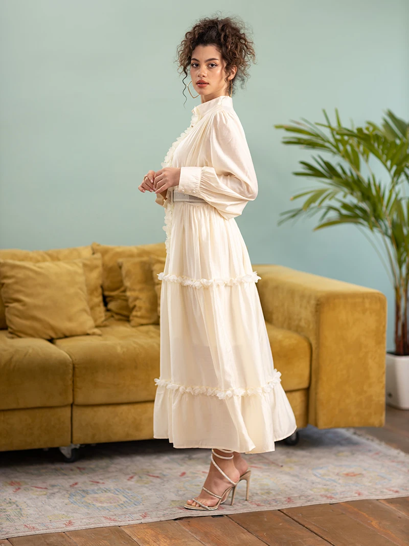 Elegant Ladies Women Long Pleated Evening Dress White Pink Blue Green Chiffon Long Sleeve Summer Dress with Belt For Women