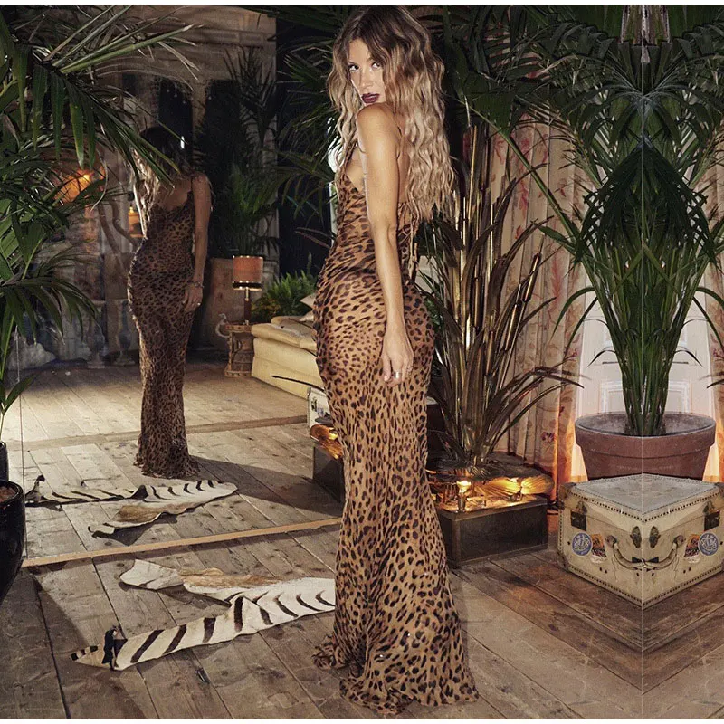 Introducing our best-selling Women's Sexy Backless Leopard Print Maxi Dress! This dress is perfect for any night out, from a night at the club to a fancy dinner party. The off-shoulder design and sleeveless halter top add a touch of sexiness, while the long flowy skirt provides a comfortable and elegant look. Made with premium materials, this dress is a limited time exclusive and is sure to turn heads. Don't miss out on the perfect fit and unique style of our Women's Sexy Backless Leopard Print Maxi Dress. Get yours now!