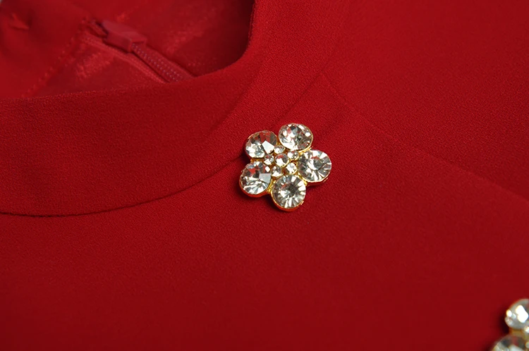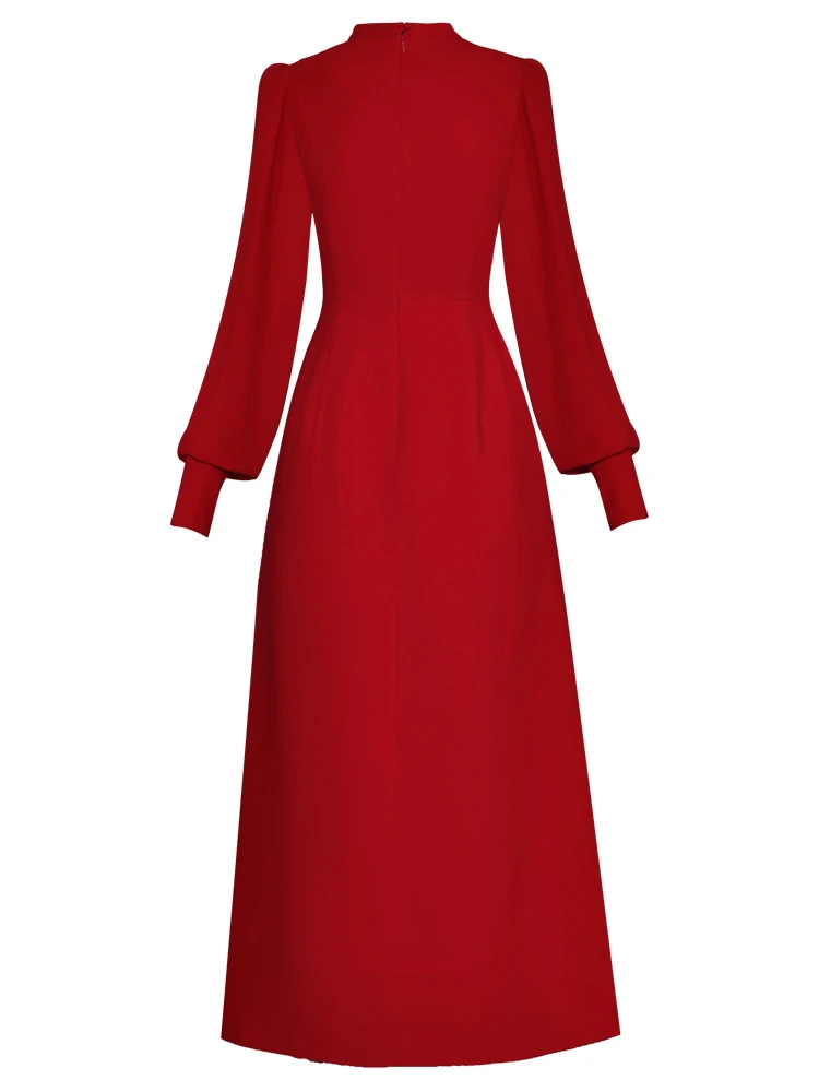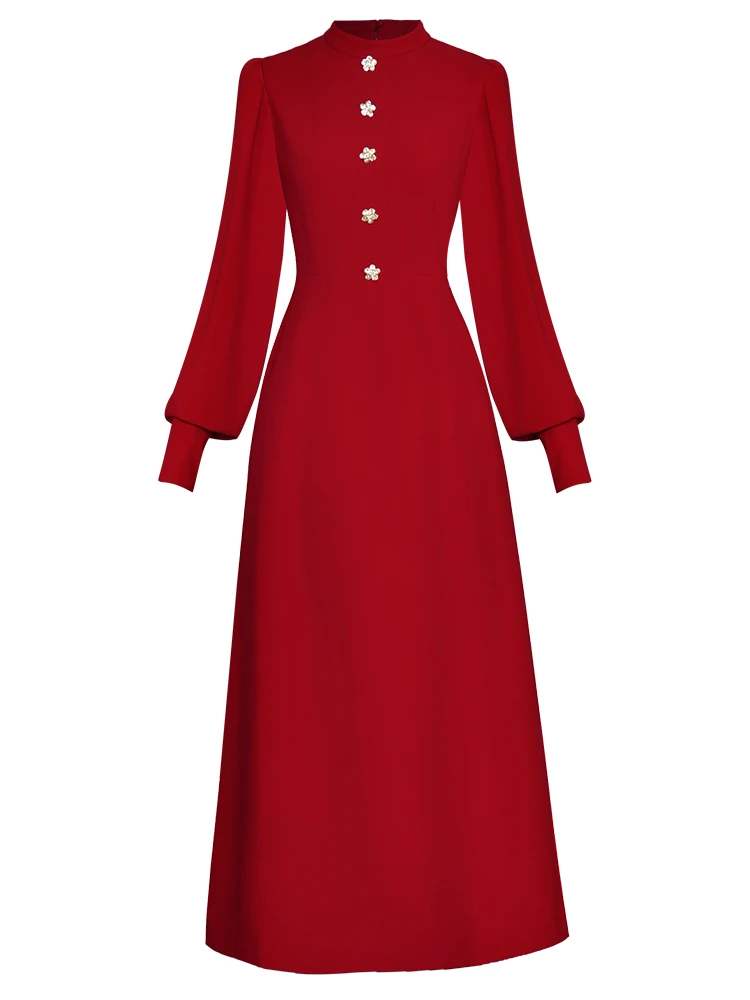 Neck Lantern Long Sleeve Button Decoration Large Swing Mid Length Wedding Party Dresses For Women