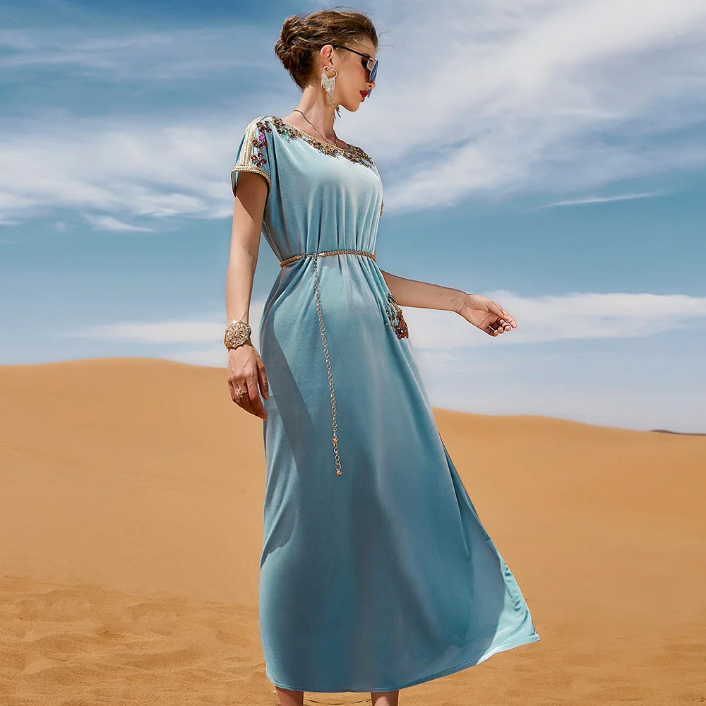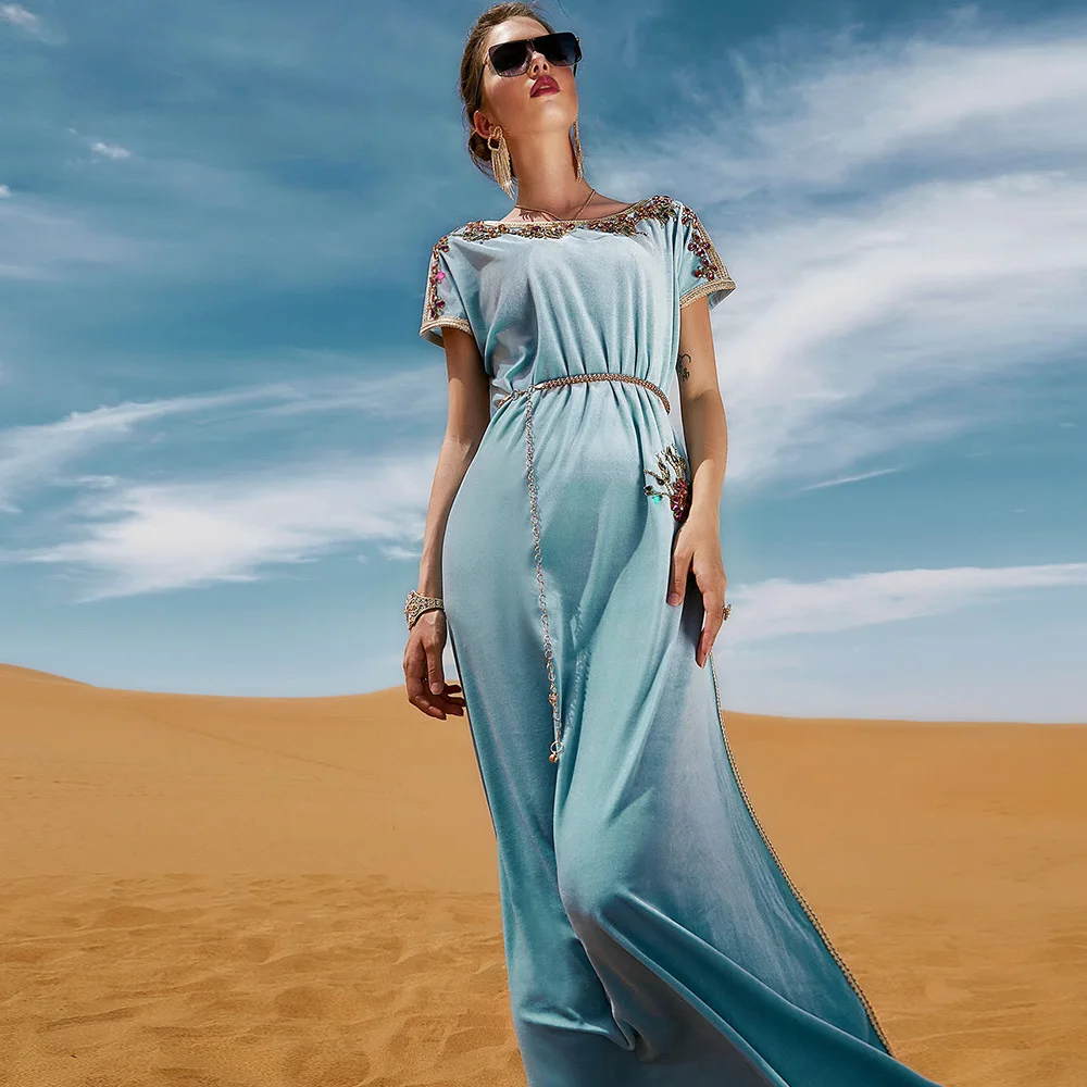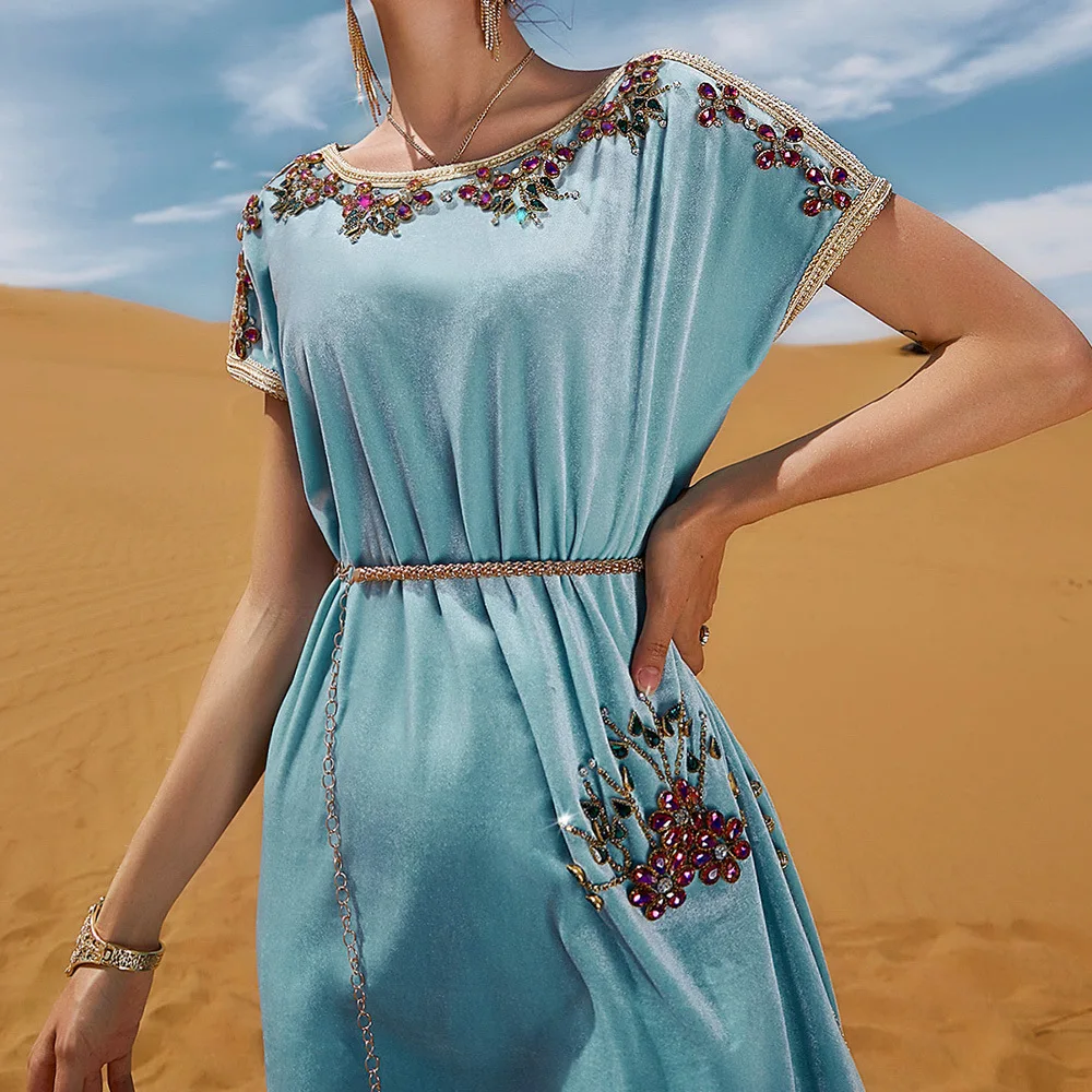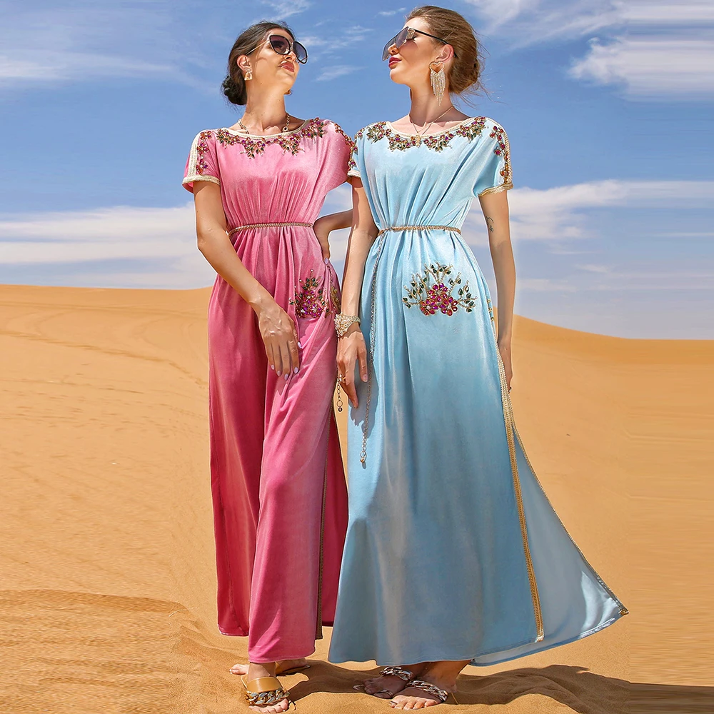 Ramadan Eid Mubarak Evening Dresses Women's Diamond Velvet Abaya Dubai Saudi Turkey Islam Muslim Long Dress Kaftan Robe