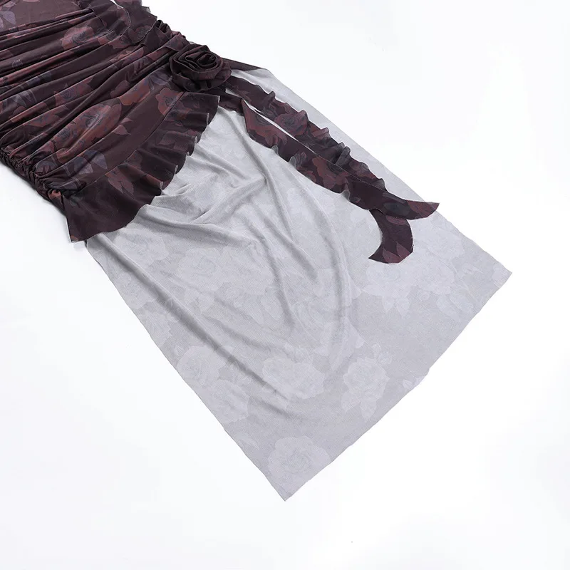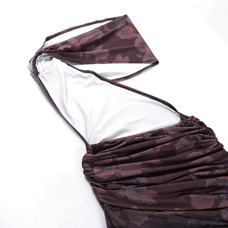 Irregular Flowers Fringe Sexy Backless Slit Midi Dress for Women Ruched Cut Out Dresses Party Club Vestido Summer