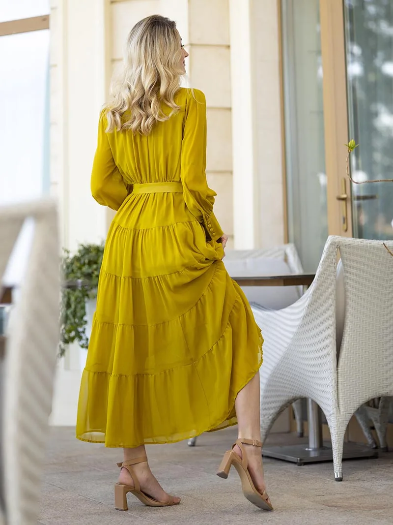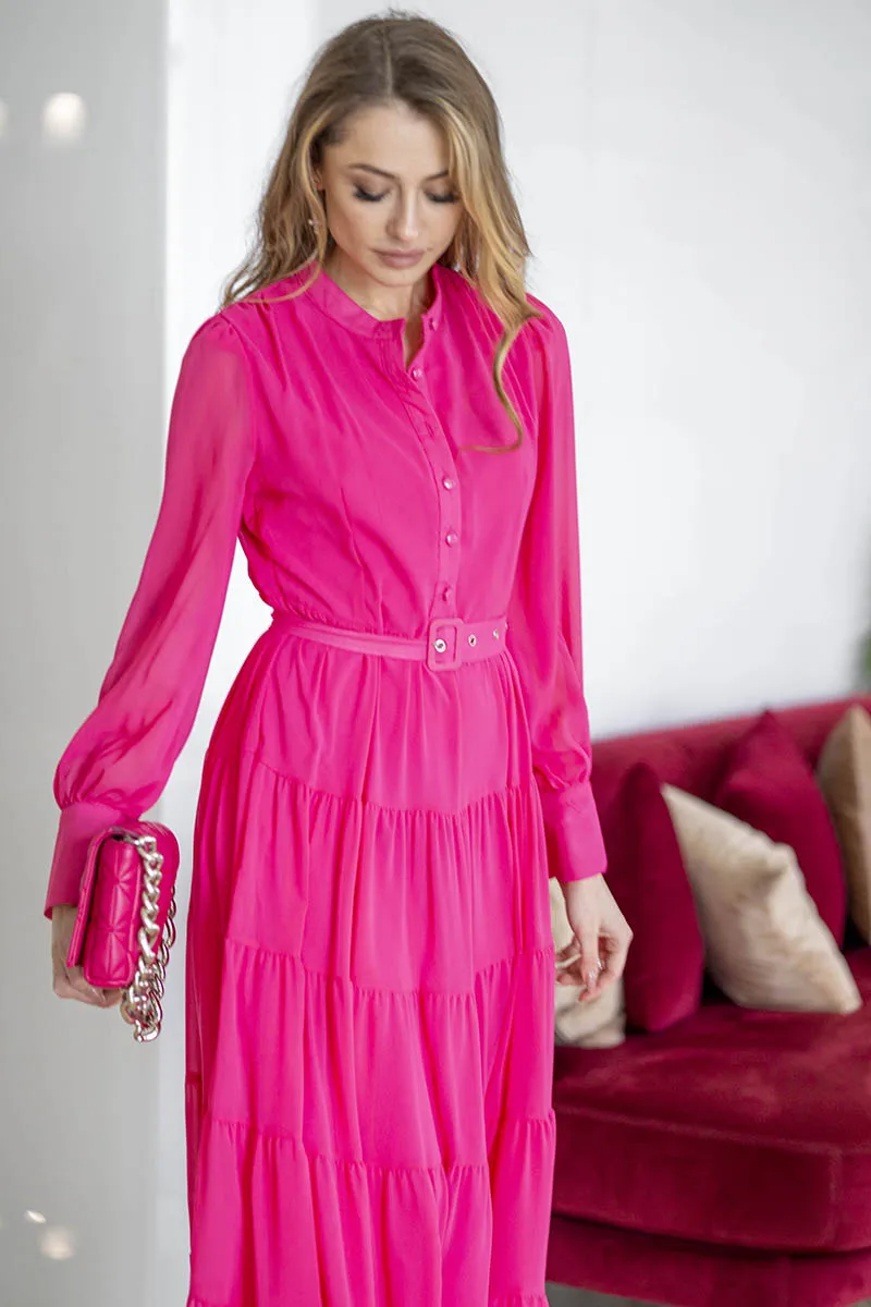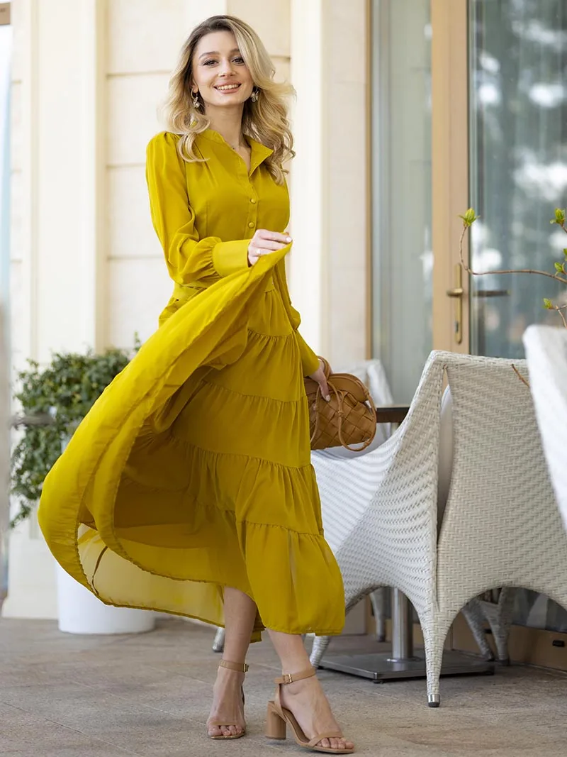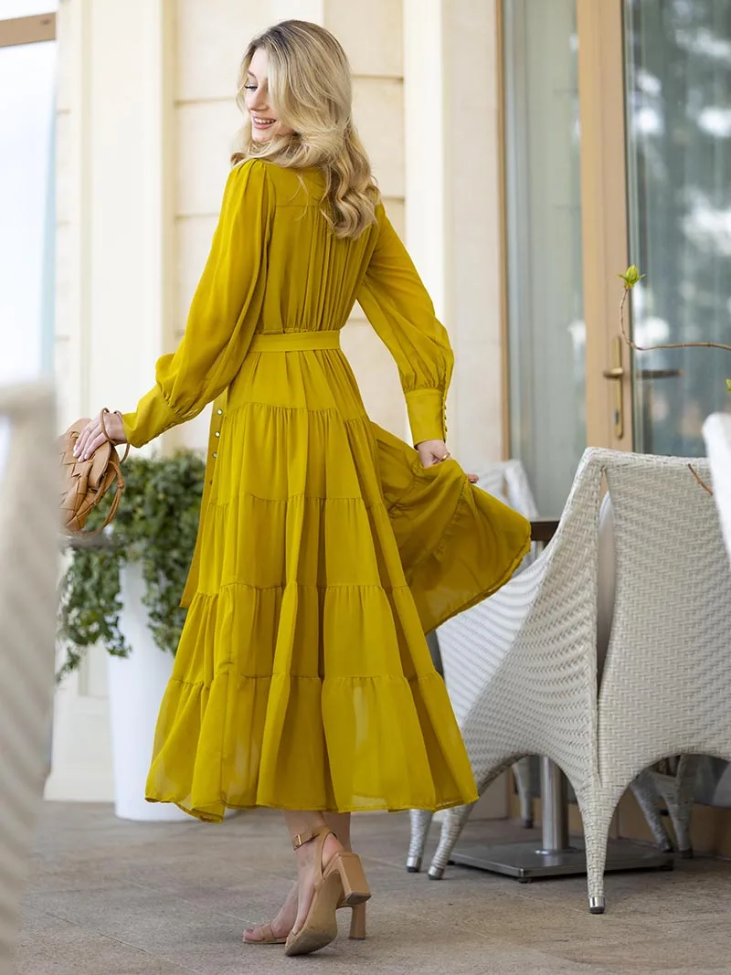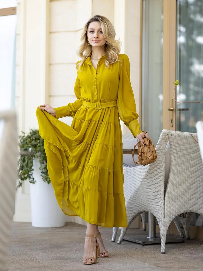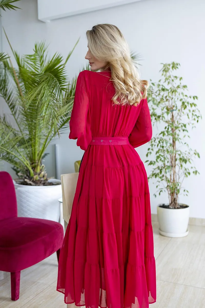 Long Sleeve Ruffle Elegant Evening Dress Blue Red Pink Pleated Maxi Prom Dress Ladies Summer Long Dress with Belt For Women 2023