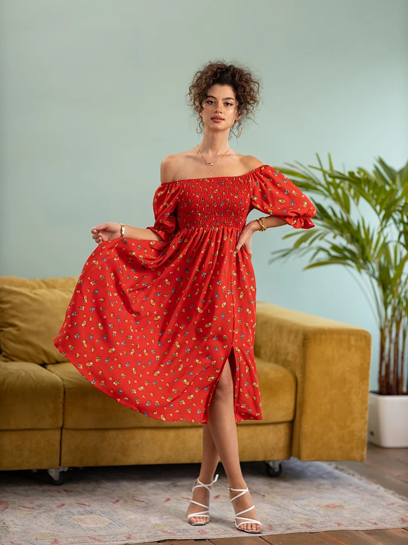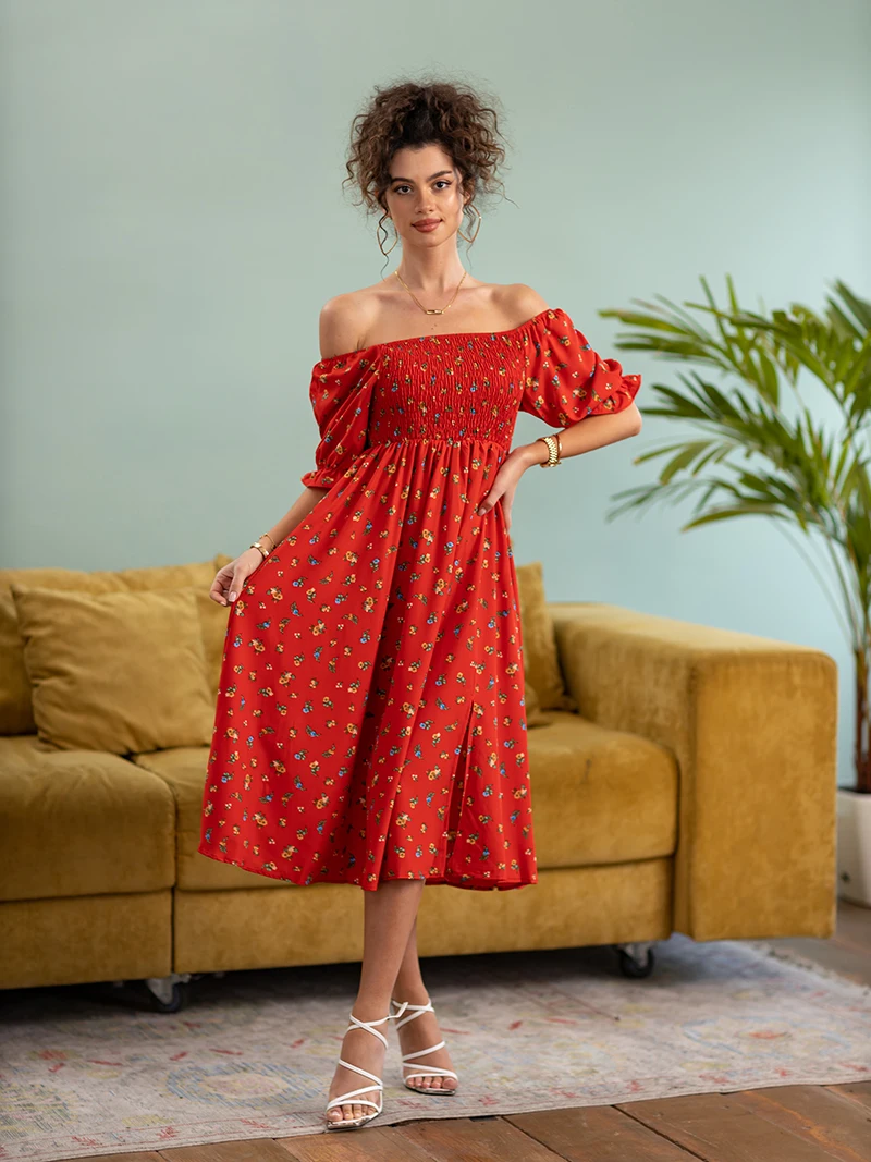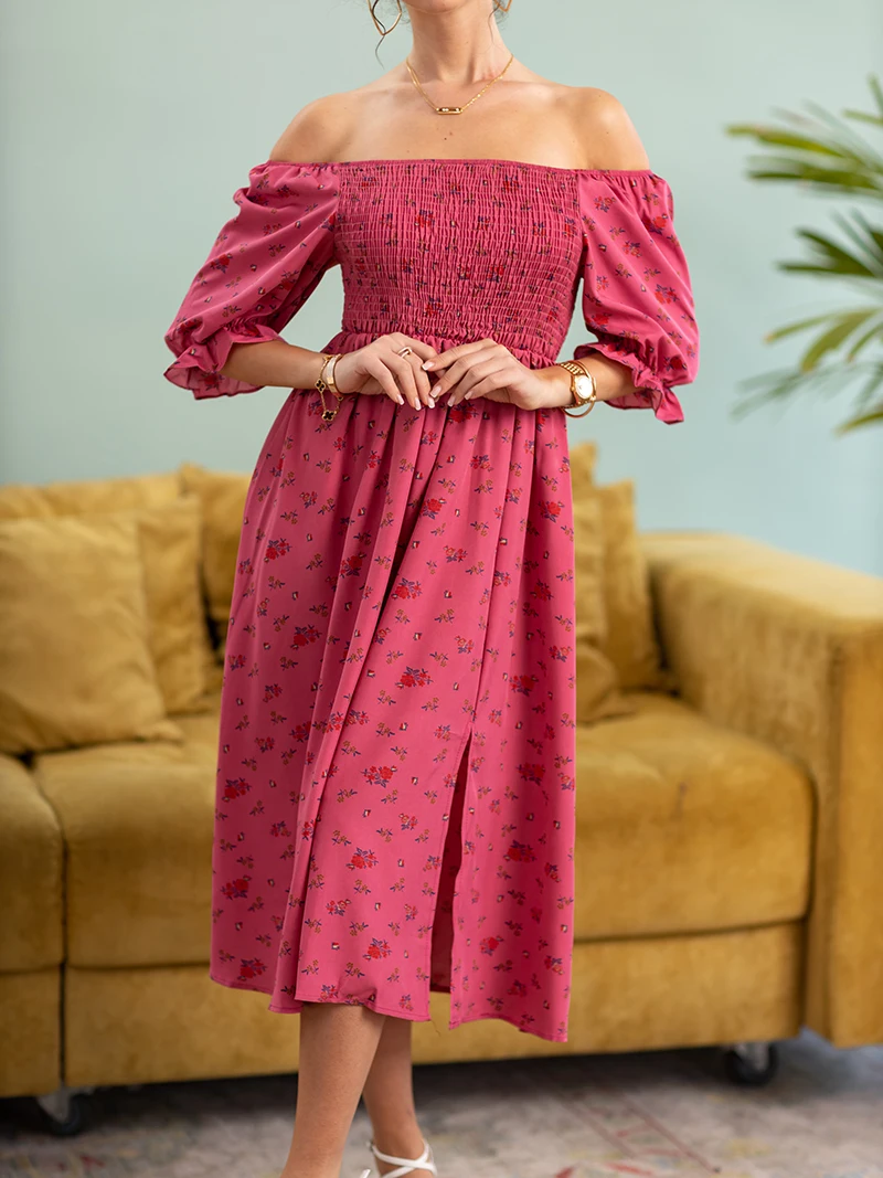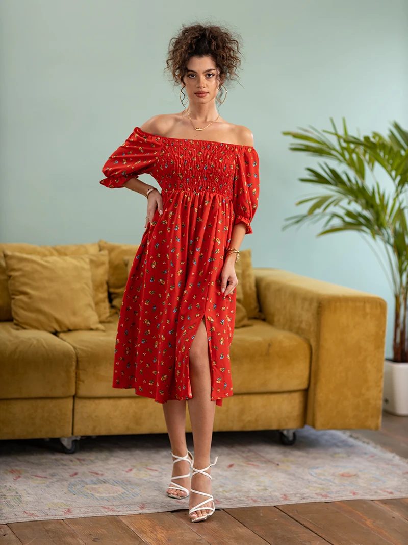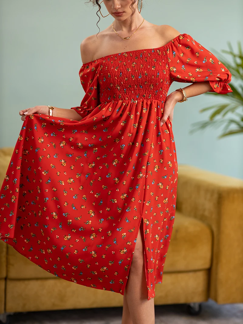 Side Slit Dresses Blue Pink Red Floral Boho Summer Long Women Dress Off Shoulder Sexy Beach Maxi Dresses For Women 2023