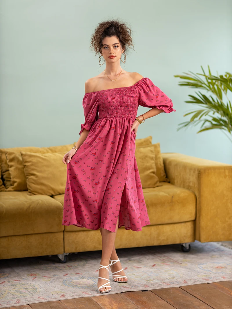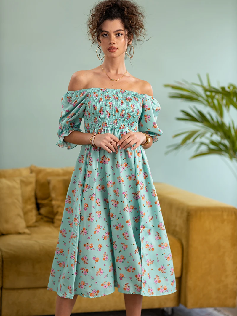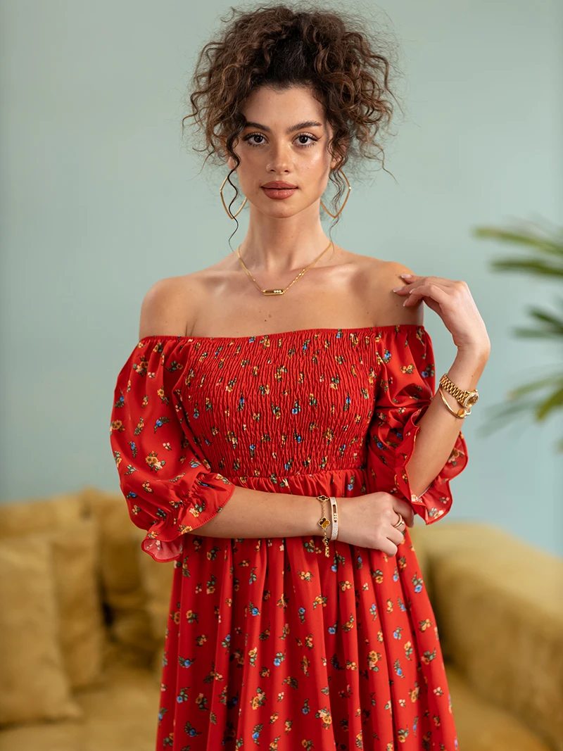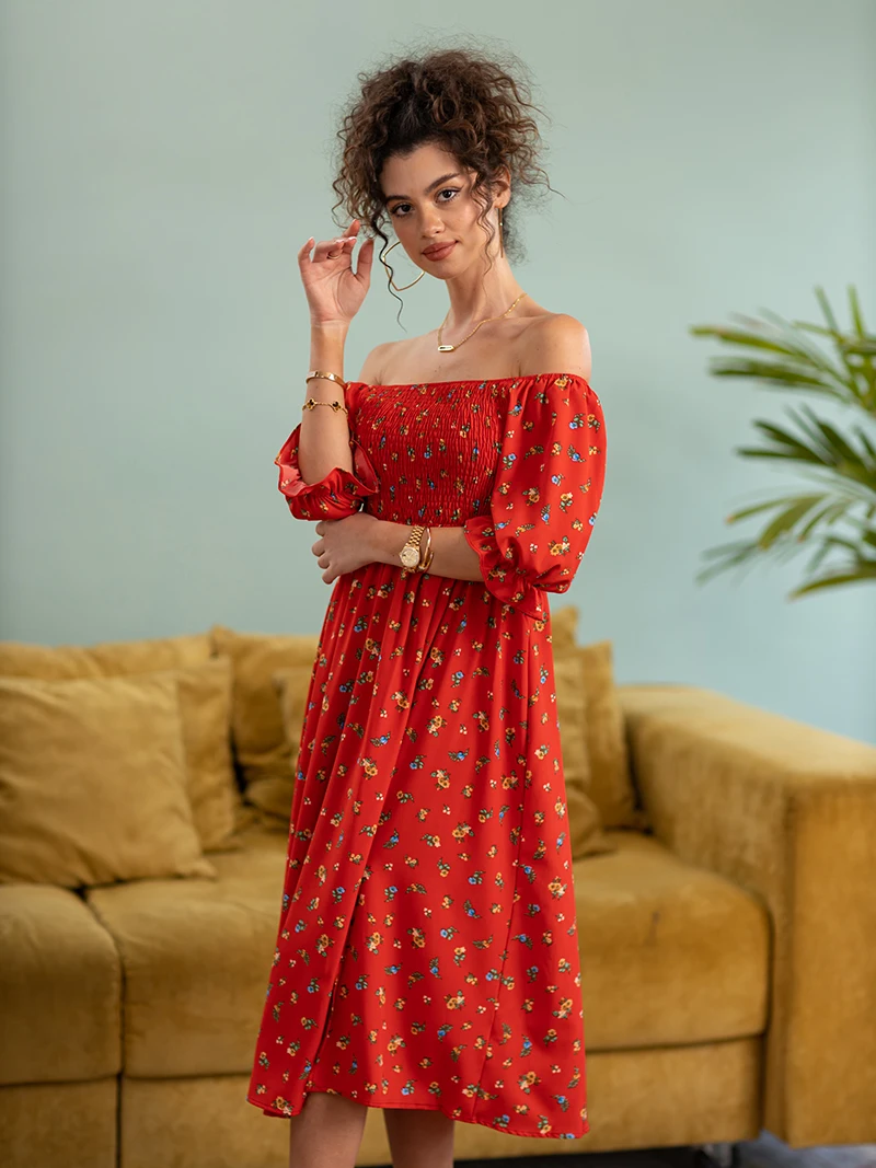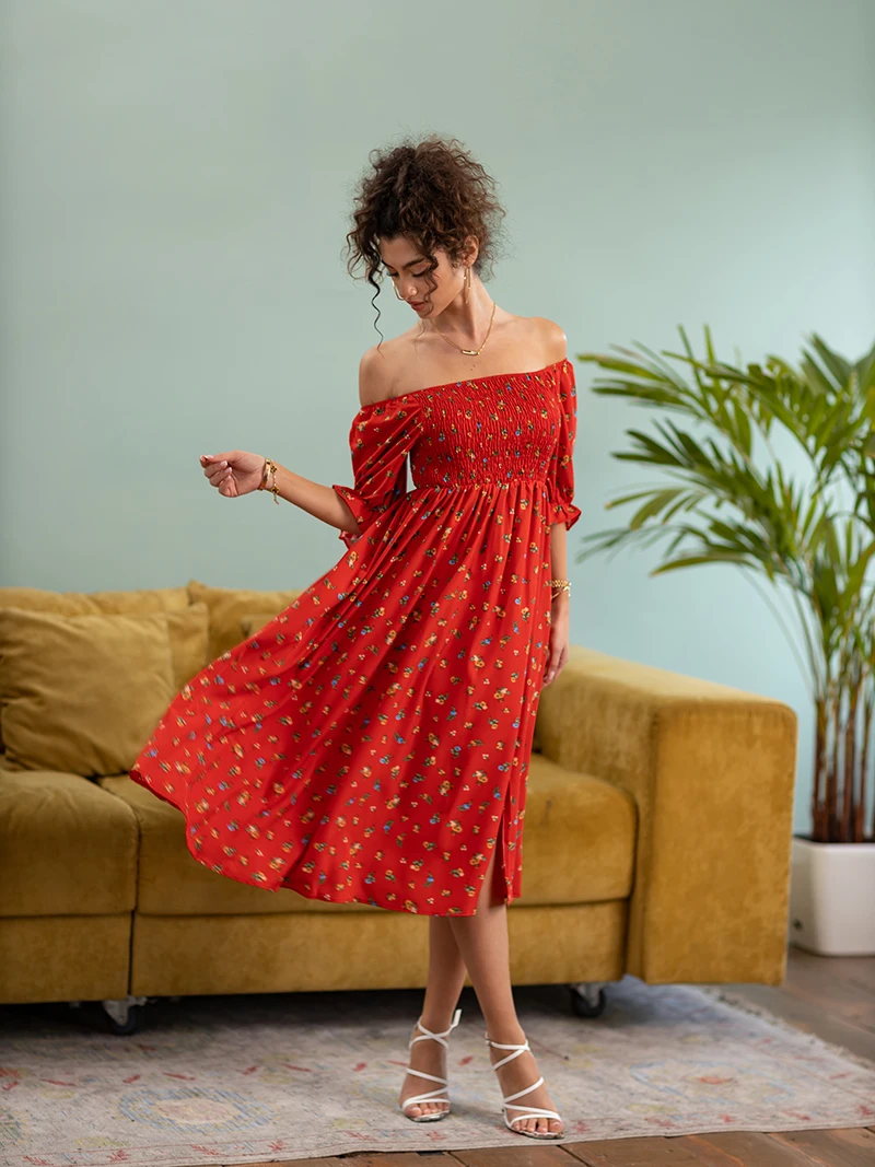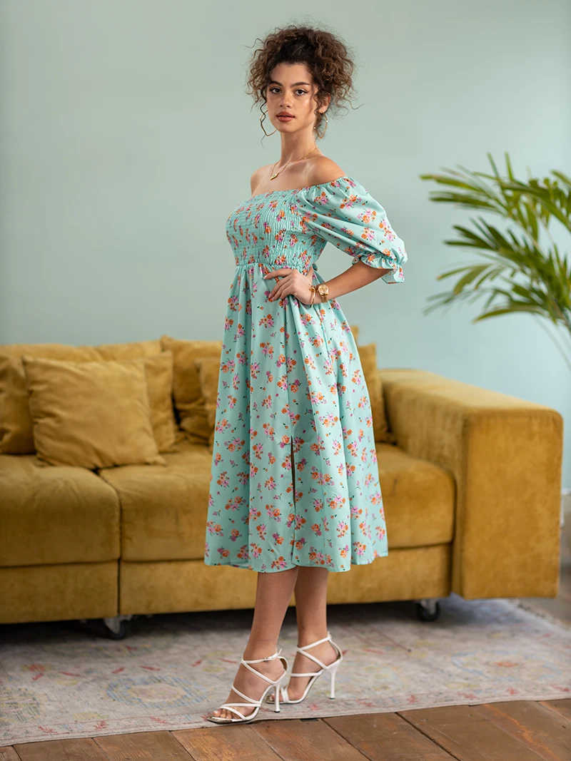 Side Slit Dresses Blue Pink Red Floral Boho Summer Long Women Dress Off Shoulder Sexy Beach Maxi Dresses For Women 2023