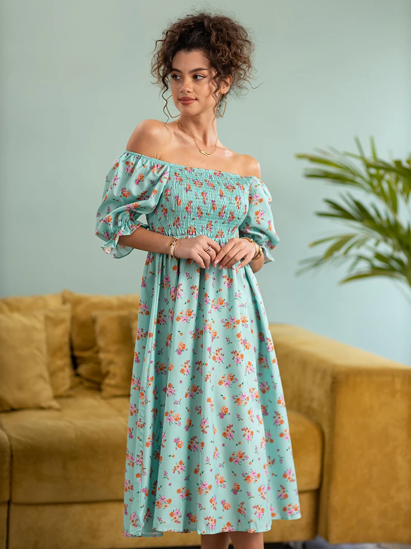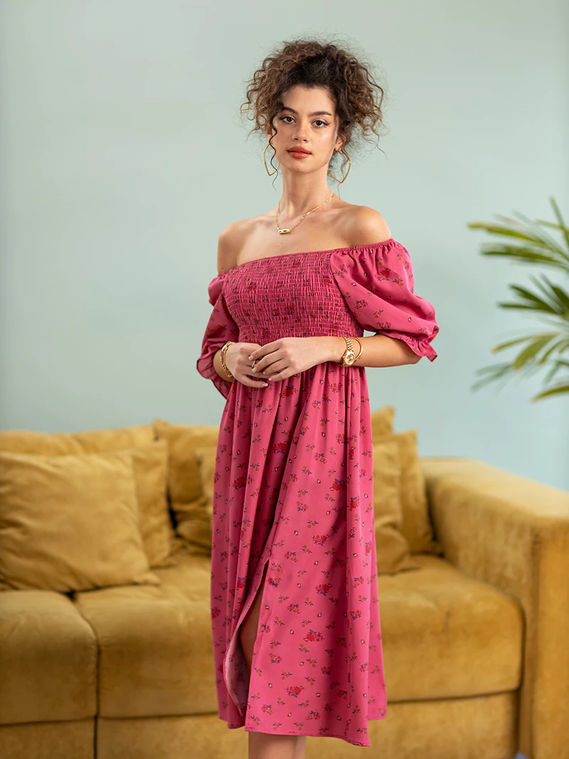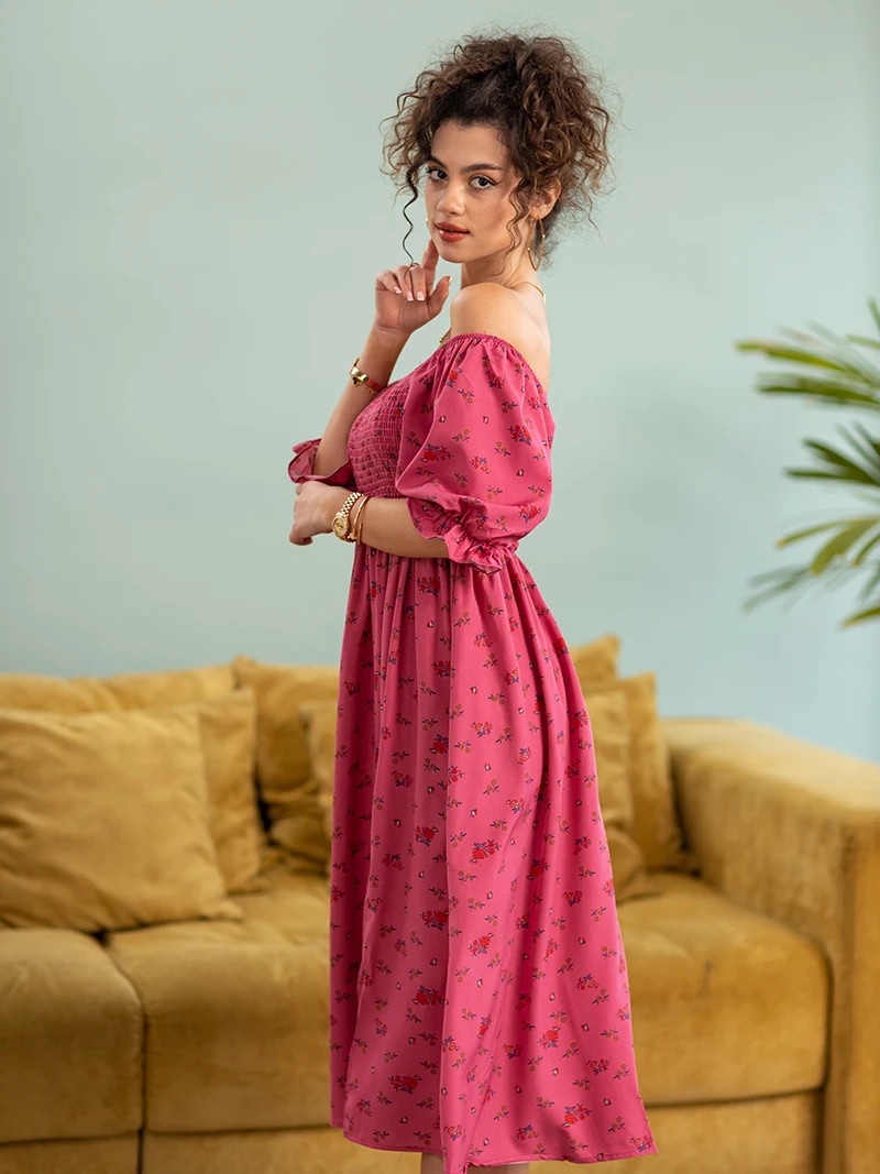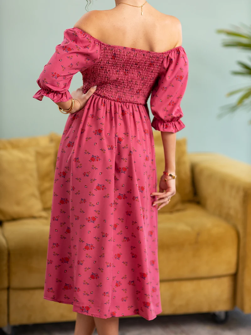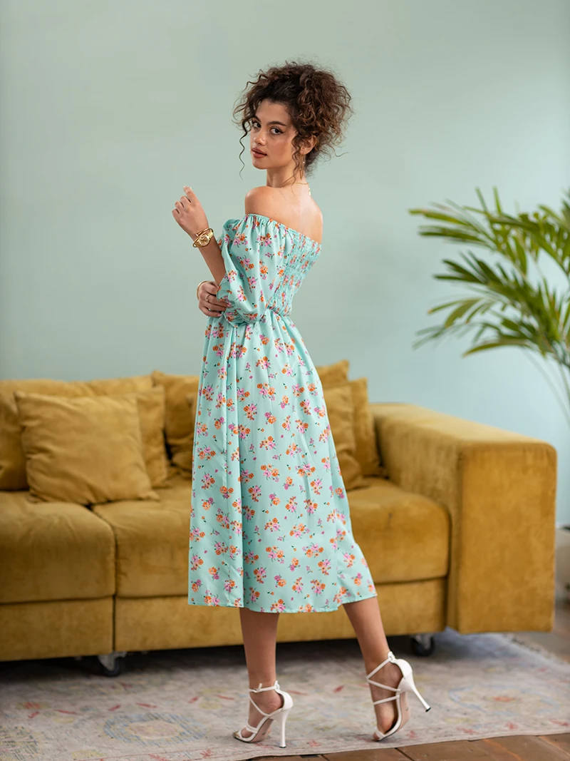 Side Slit Dresses Blue Pink Red Floral Boho Summer Long Women Dress Off Shoulder Sexy Beach Maxi Dresses For Women 2023