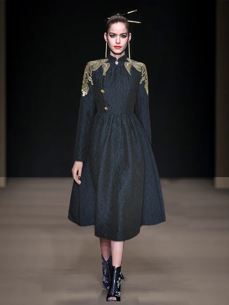 Introducing our elegant Solid Embroidered Jacquard Dresses, designed for the modern woman who values both style and comfort. With a stand collar and long sleeves, this dress exudes sophistication and grace. The high waistline creates a flattering silhouette, while the intricate embroidery adds a touch of luxury. Made with premium materials, this dress is perfect for any occasion and will quickly become a staple in your wardrobe. Don't miss out on this limited time offer and elevate your wardrobe with our best-selling dress today!