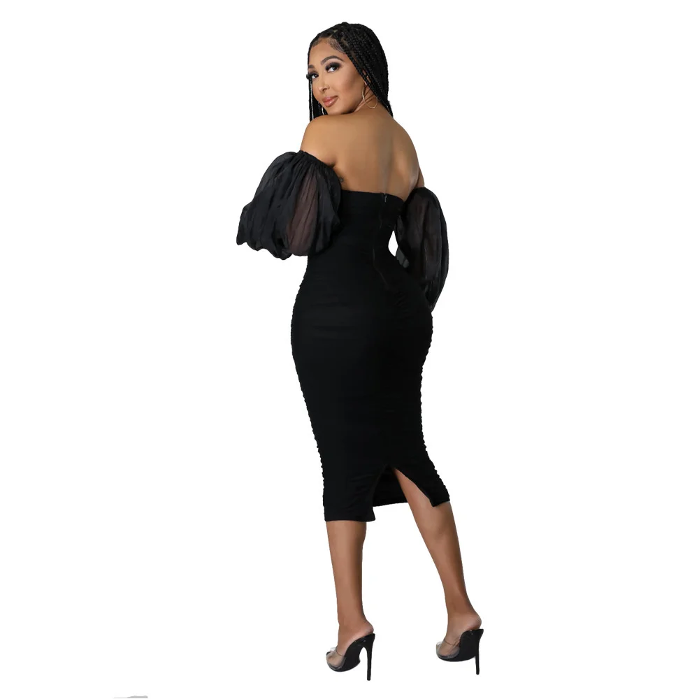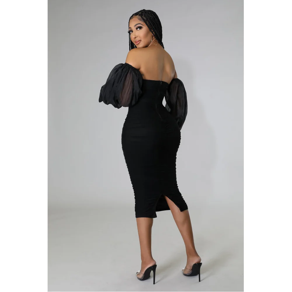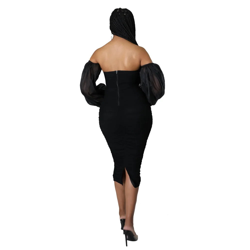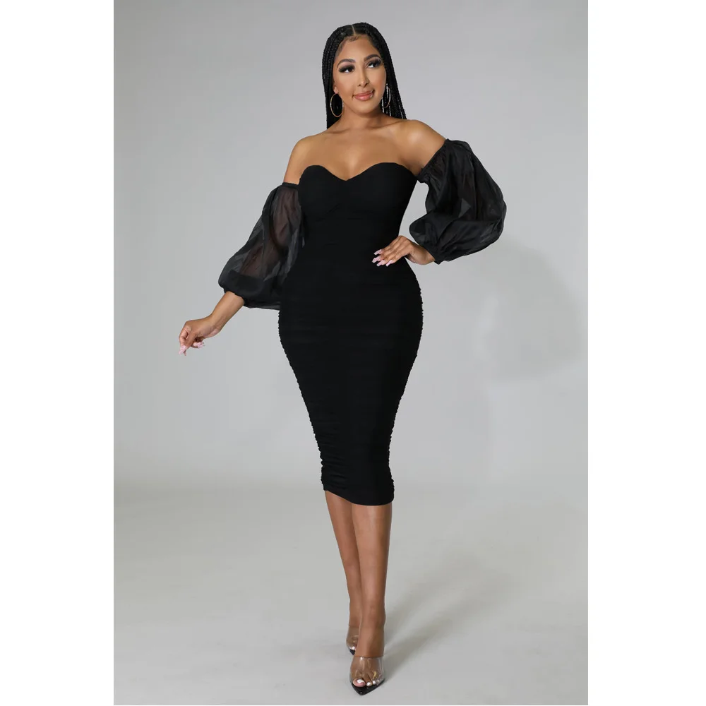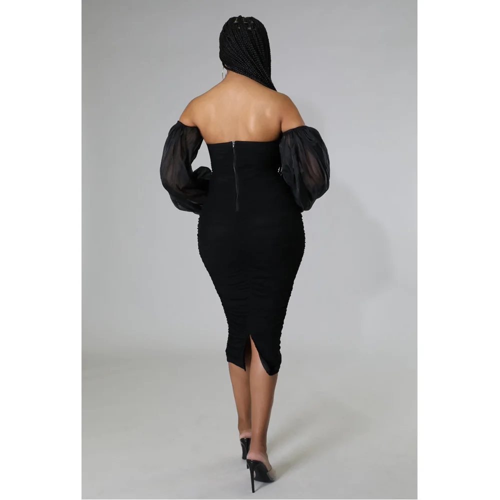The silhouette is a harmonious blend of modern flair and classic charm, with a high waist that accentuates your figure and a medium-length skirt that exudes sophistication. The lantern sleeves cascade gracefully, framing your arms with a touch of romance, while the long sleeves offer a hint of mystery.