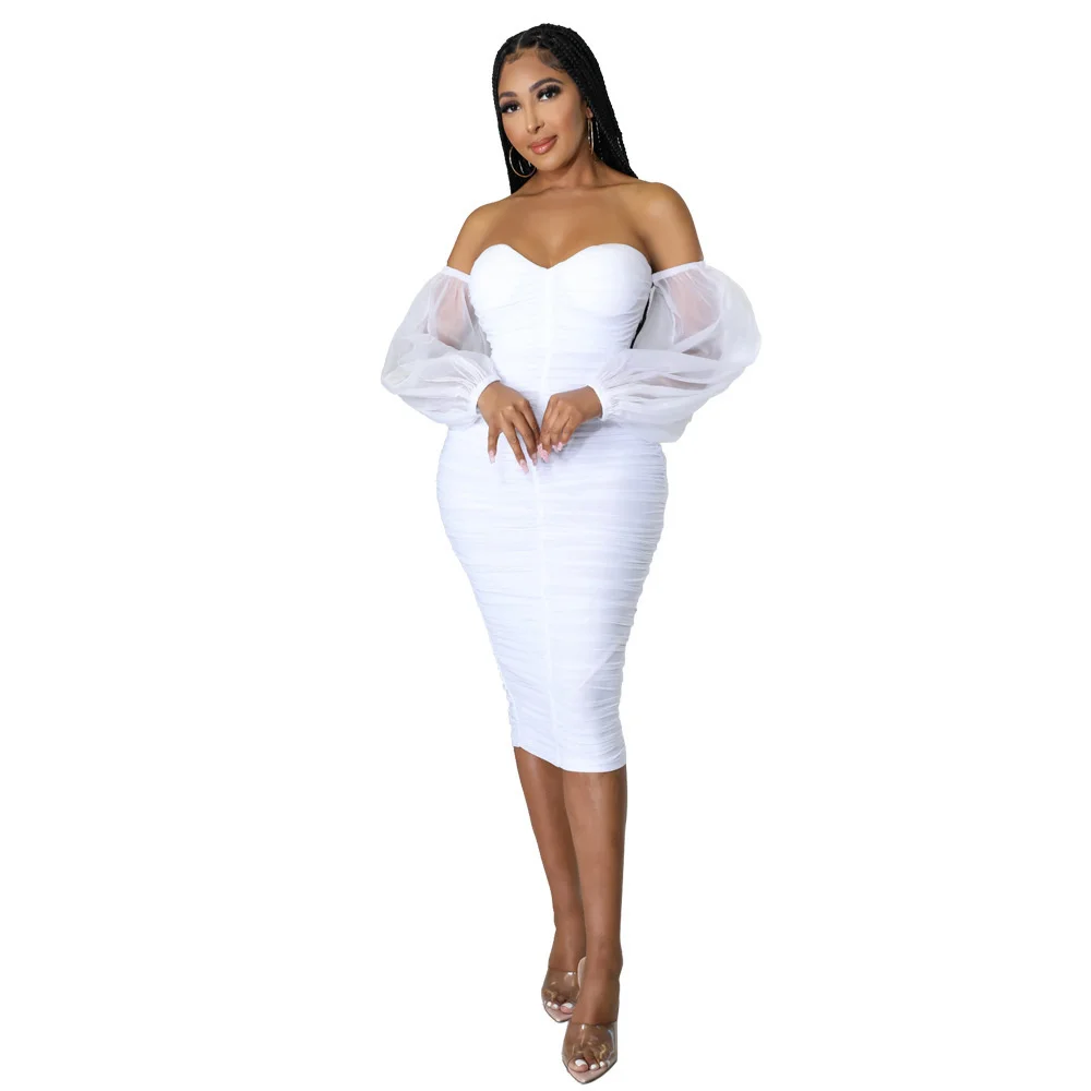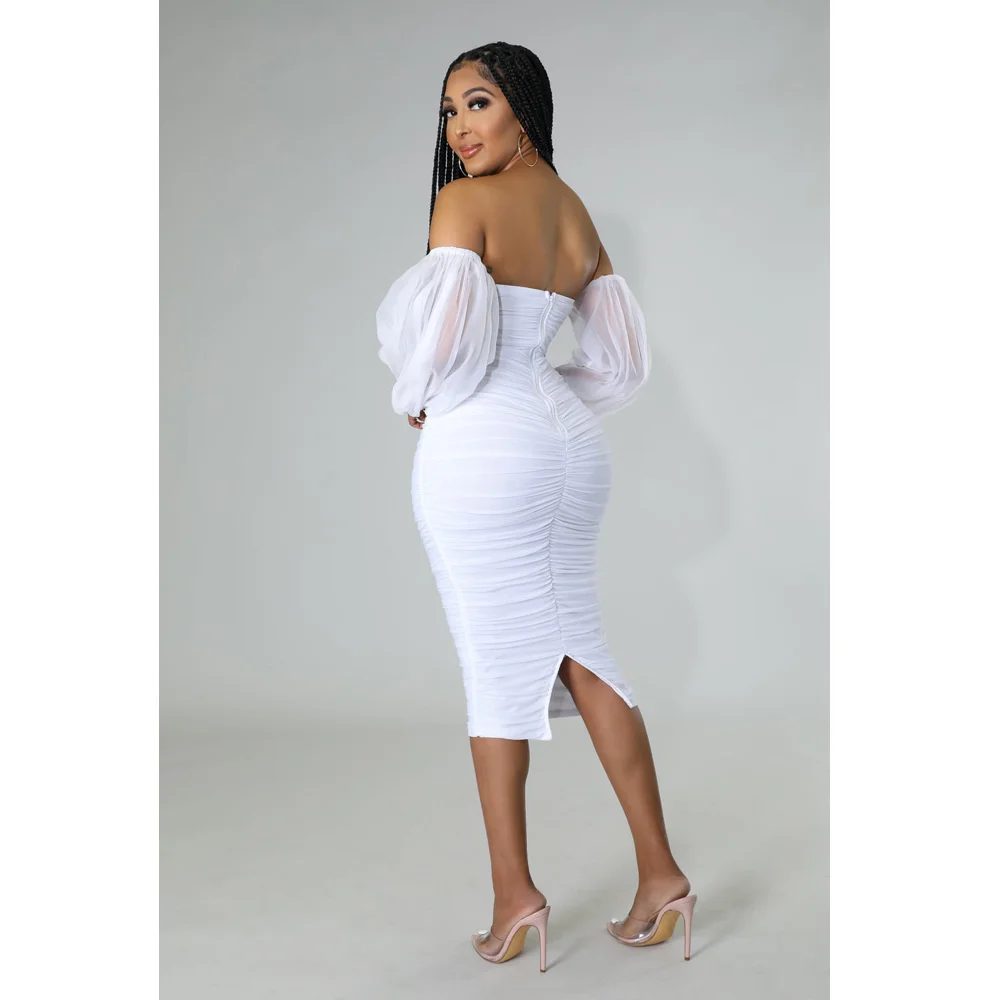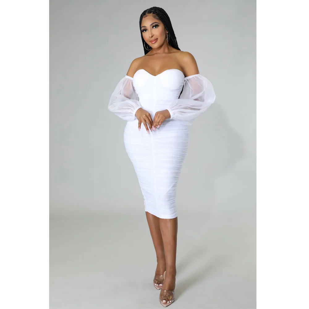 In the realm of sophistication and style, behold the exquisite creation known as the Elegant Long Sleeve Pleated Dress. Picture yourself enveloped in luxury, draped in flowing milk silk fabric that whispers of elegance and grace.