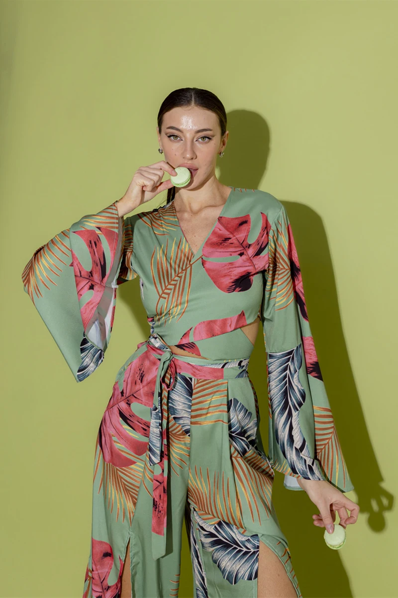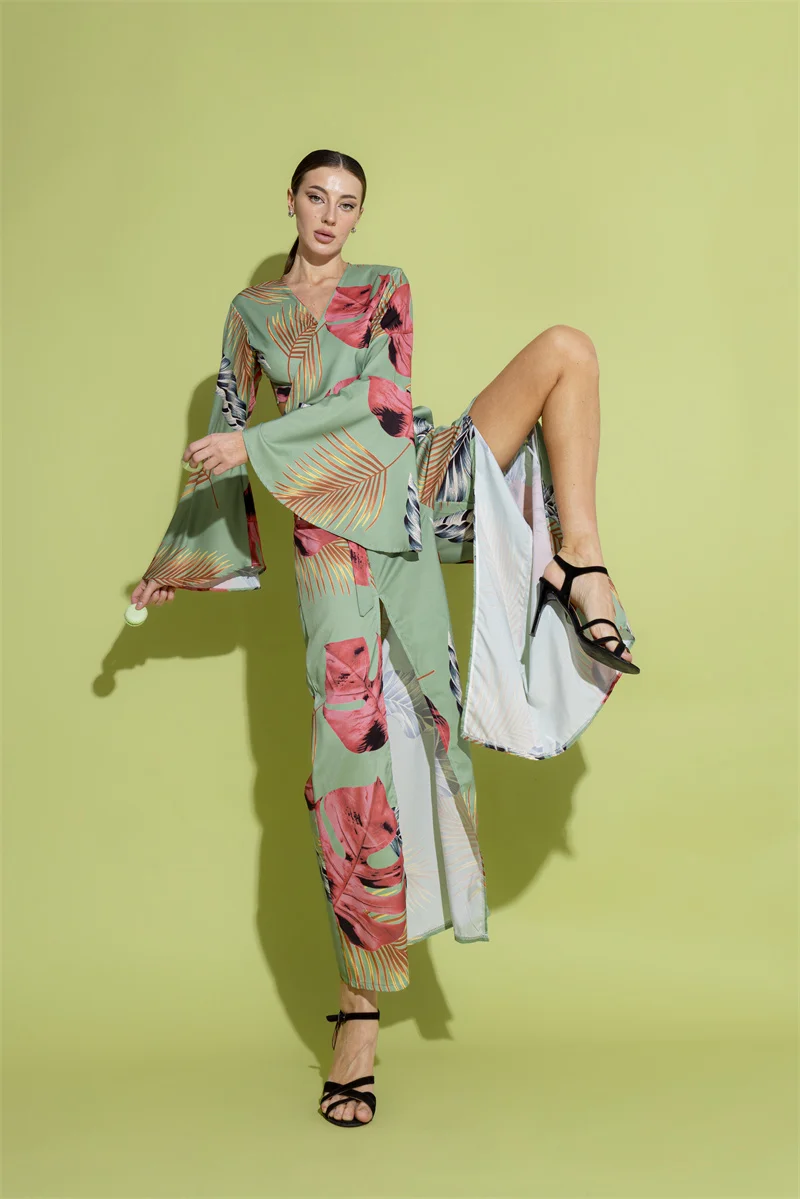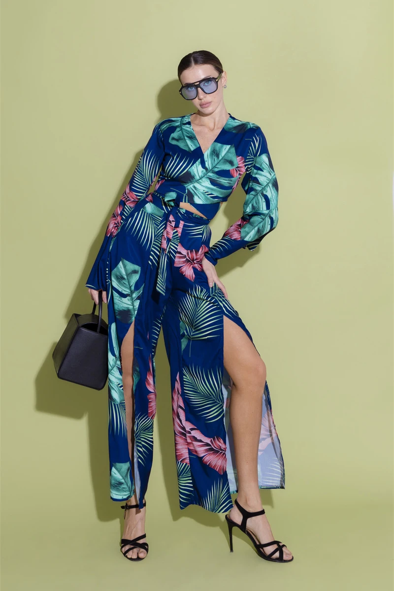 Boho Slit Sexy Tracksuit Women Two Piece Set Crop Top Pants Suit Casual Beach Loungewear 2 Piece Sets Womens Outfits Summer 2023