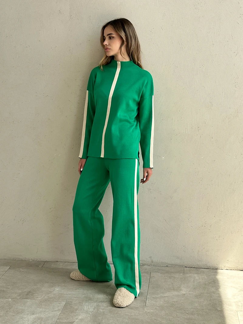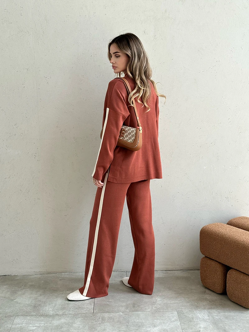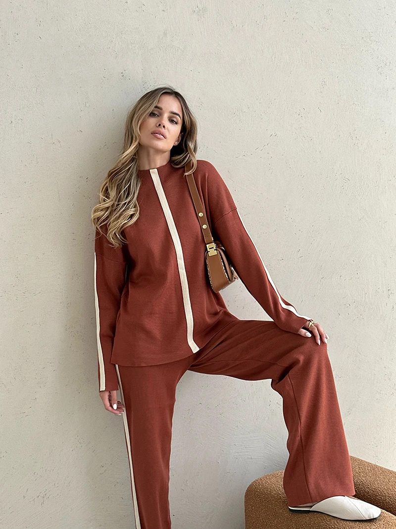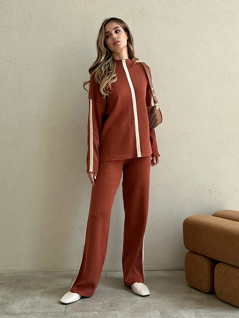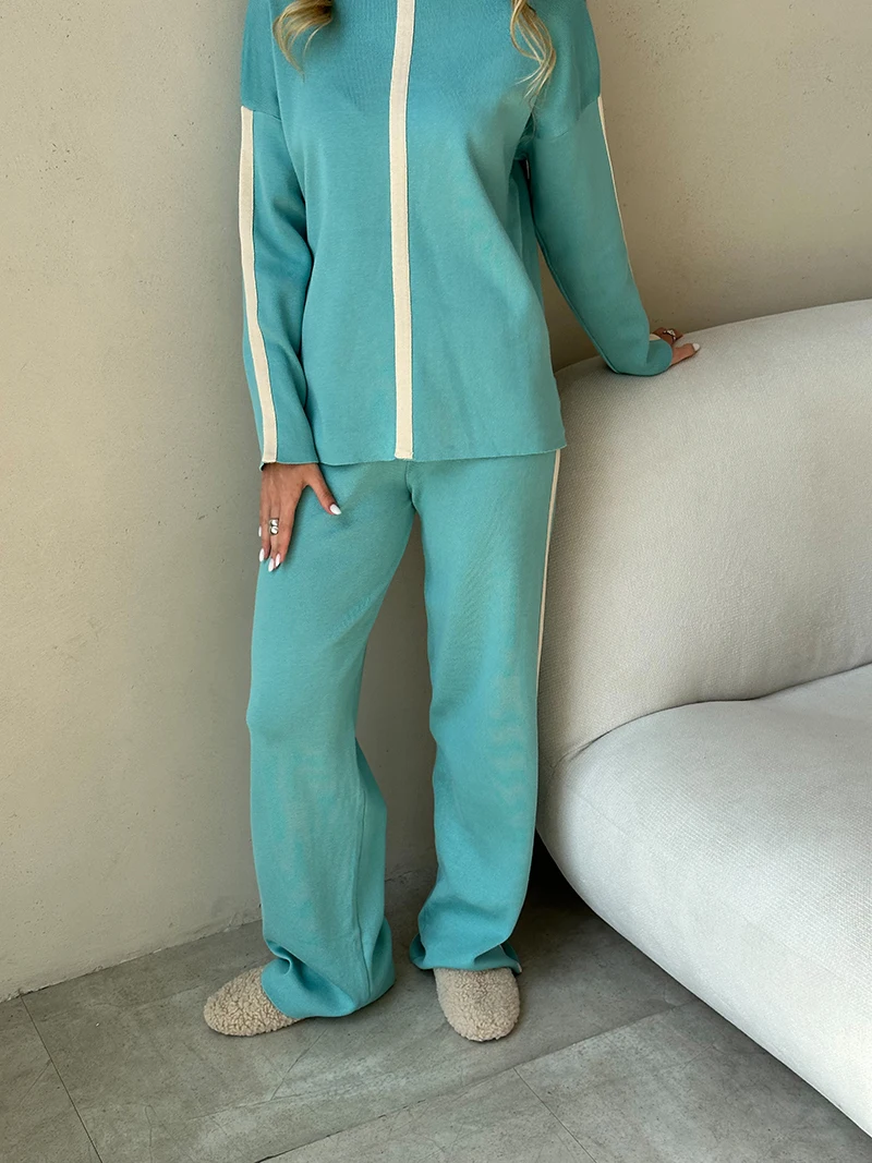 Casual Knit Tracksuit Women Two Piece Set 2 Piece Pant Sweater Matching Sets Loungewear Knit Suit Knitted Two Piece Women Sets