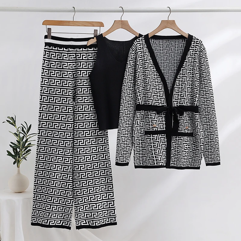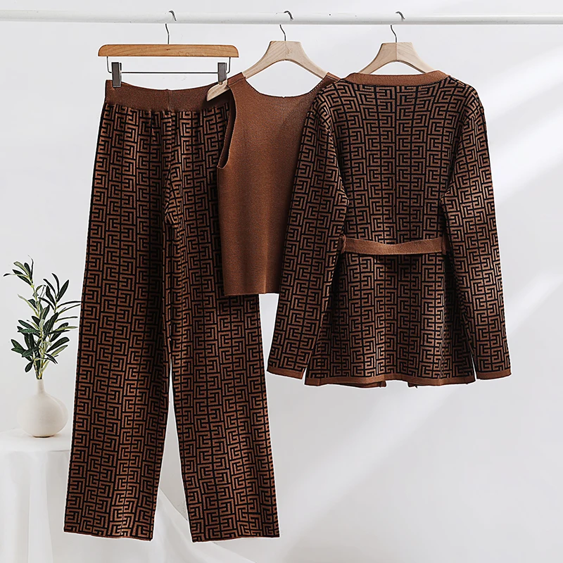 Elegant Knit 3 Piece Set Women Luxury Vest Cardigan Pants Suit Knitted Three Piece Women Sets Autumn Winter Knit Set Women 2023