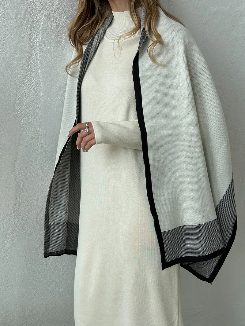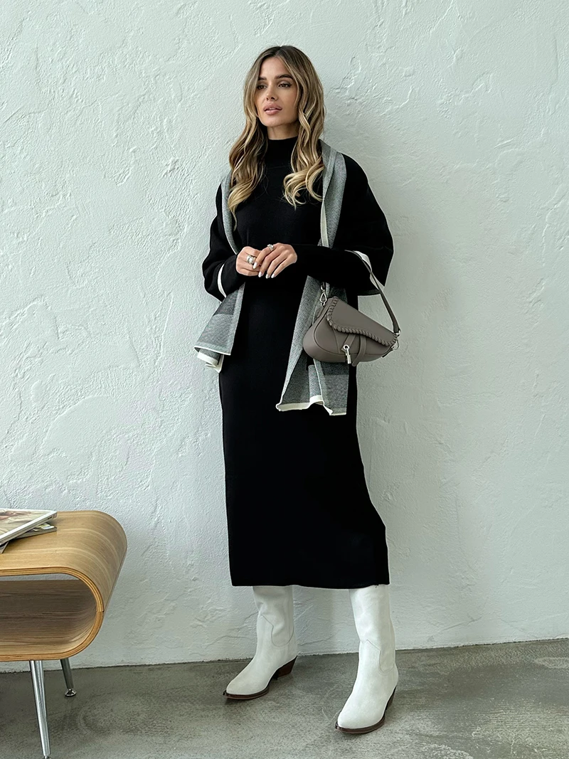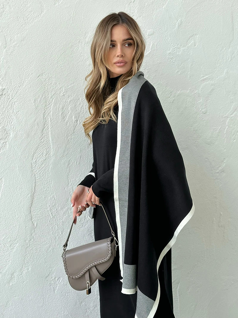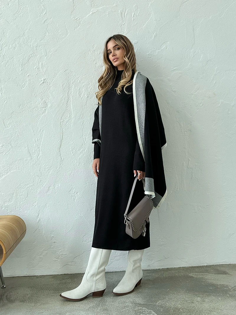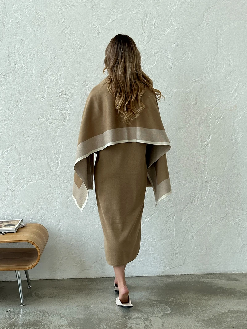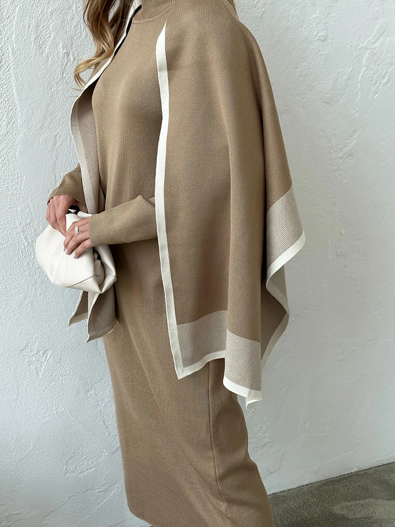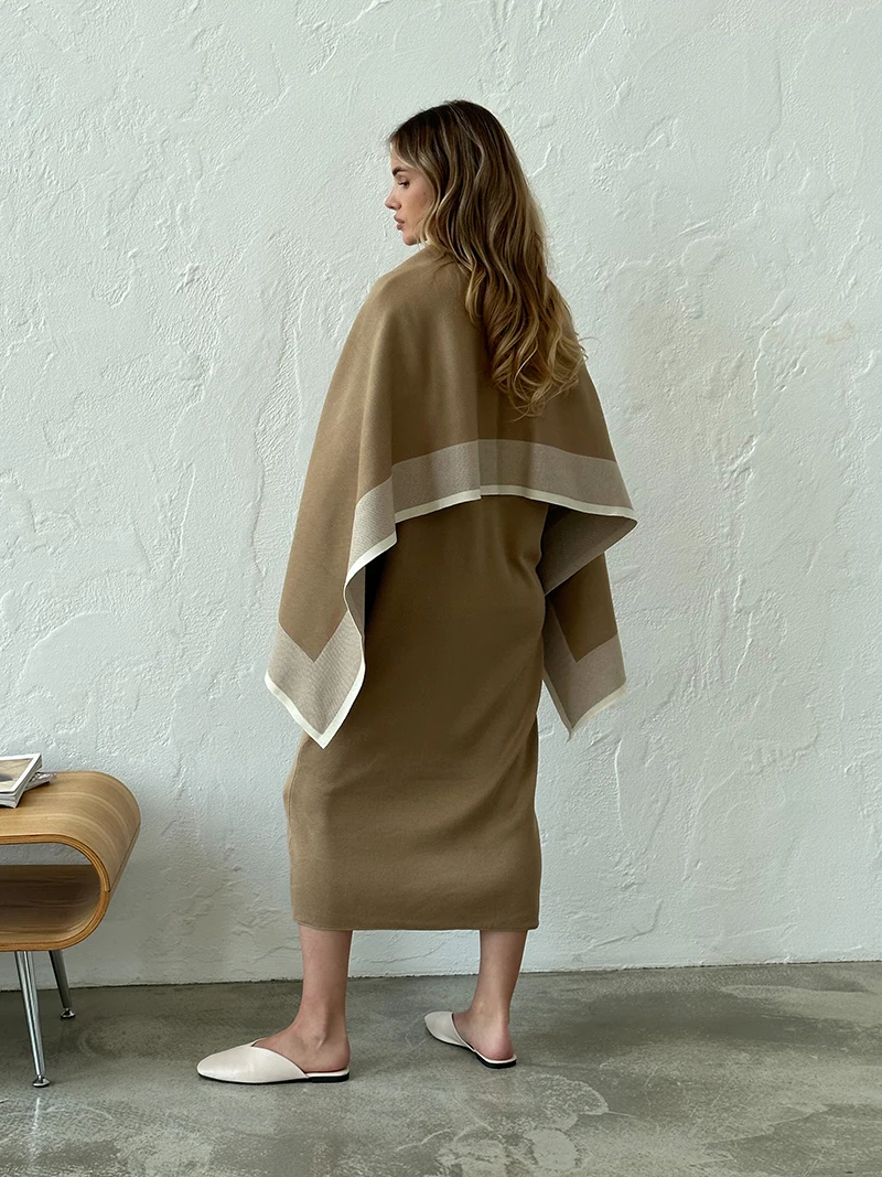 Elegant Knit Two Piece Set Black Brown Shawl Dress Women Knit Suit 2 Piece Sets Women Outfit Winter Knitted Two Piece Women Sets
