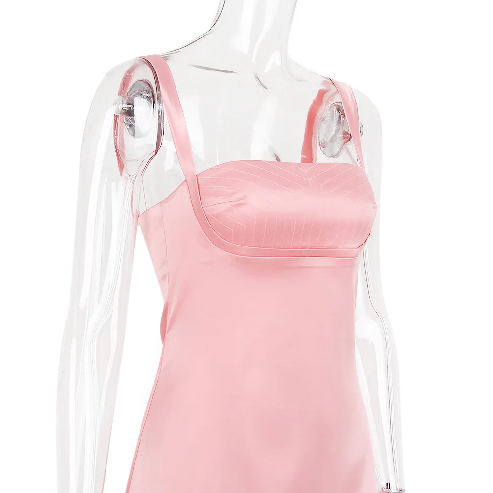 Satin Vestidos Elegant Sexy Backless Pink Mini Dress Party Club Outfits for Women Dresses Hot Clothes Coquette