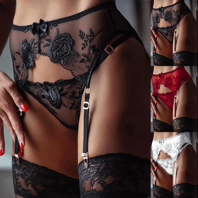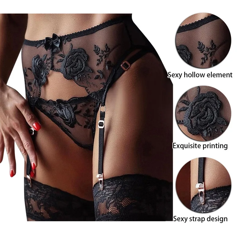 Women's Sexy Lingerie Plus Size Lace Garter Suspenders Transparent Underwear Adjustable Double Breasted Waist Belt for Stockings