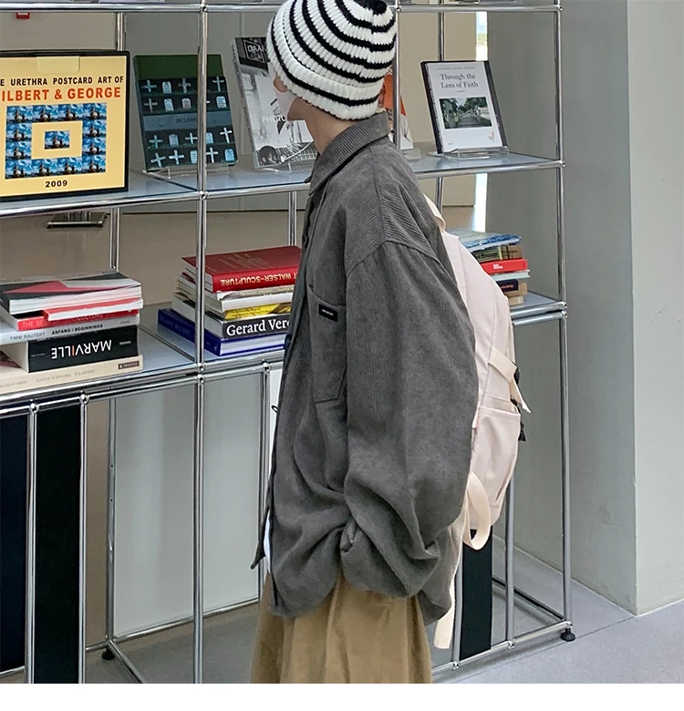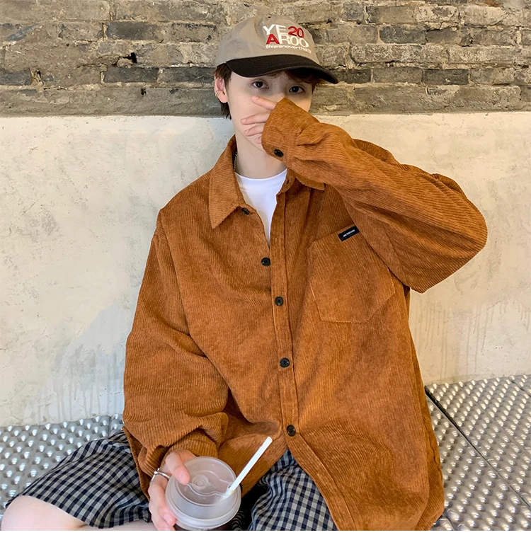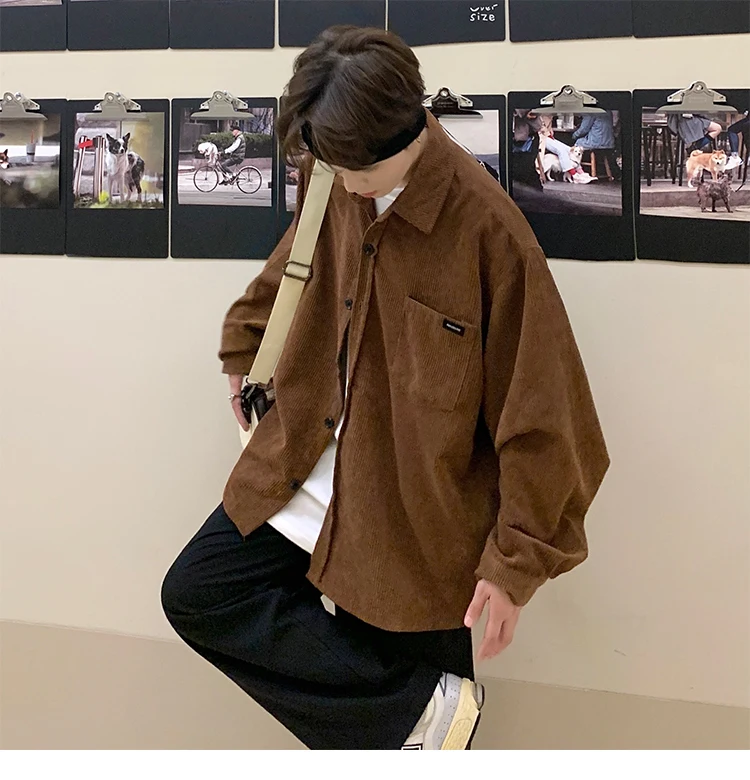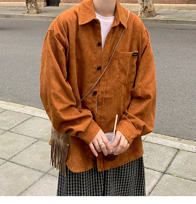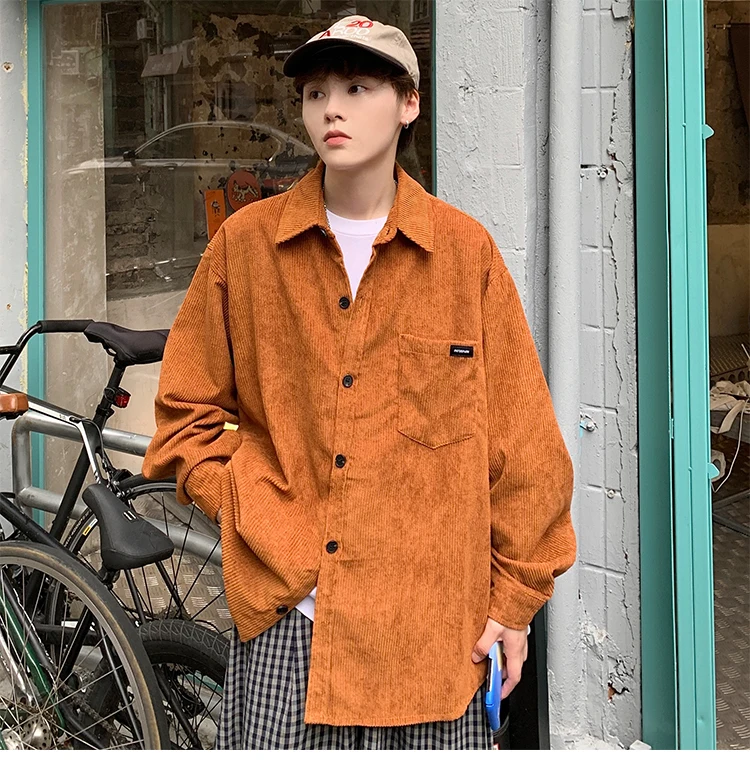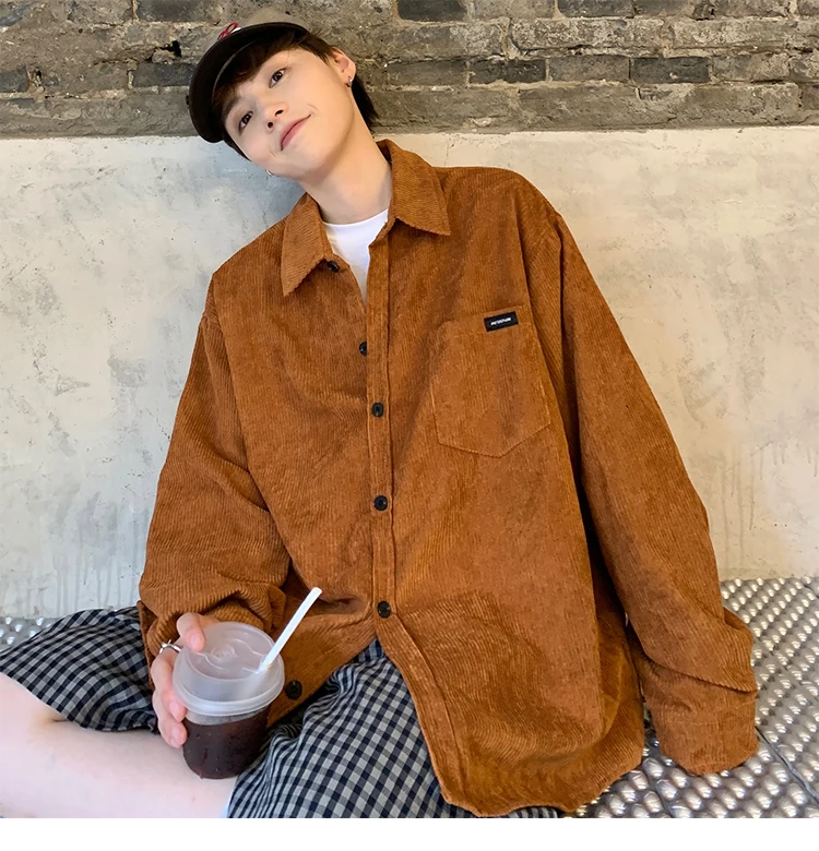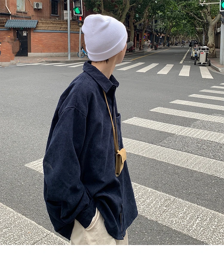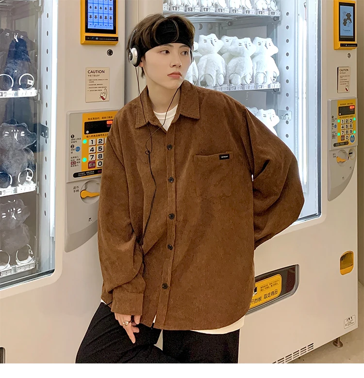 Men Corduroy Vintage Harajuku Shirts 2023 Autumn Mens Korean Fashions Button Up Shirts Male Long Sleeve Black Shirt 2XL